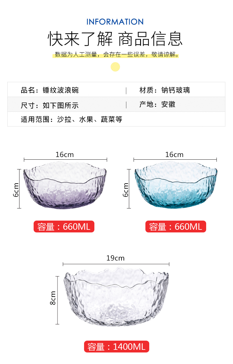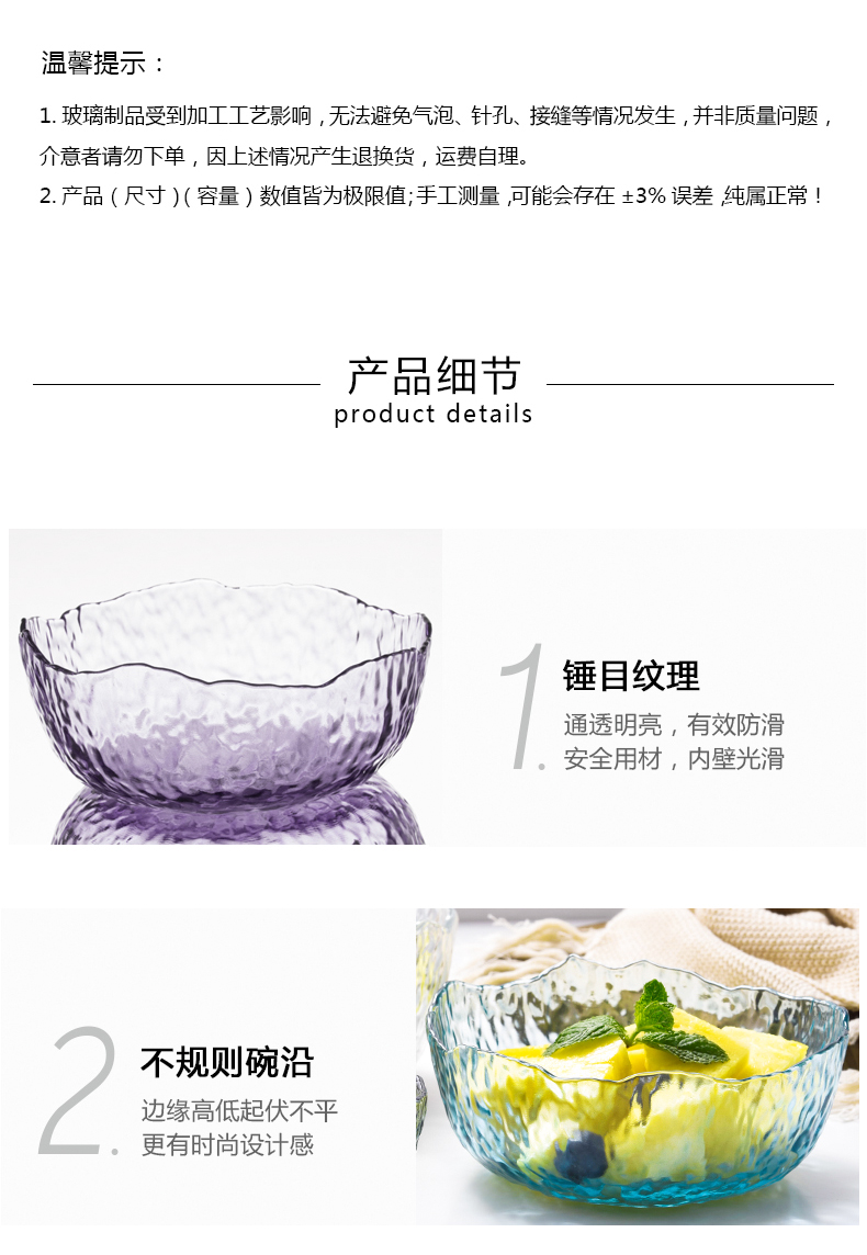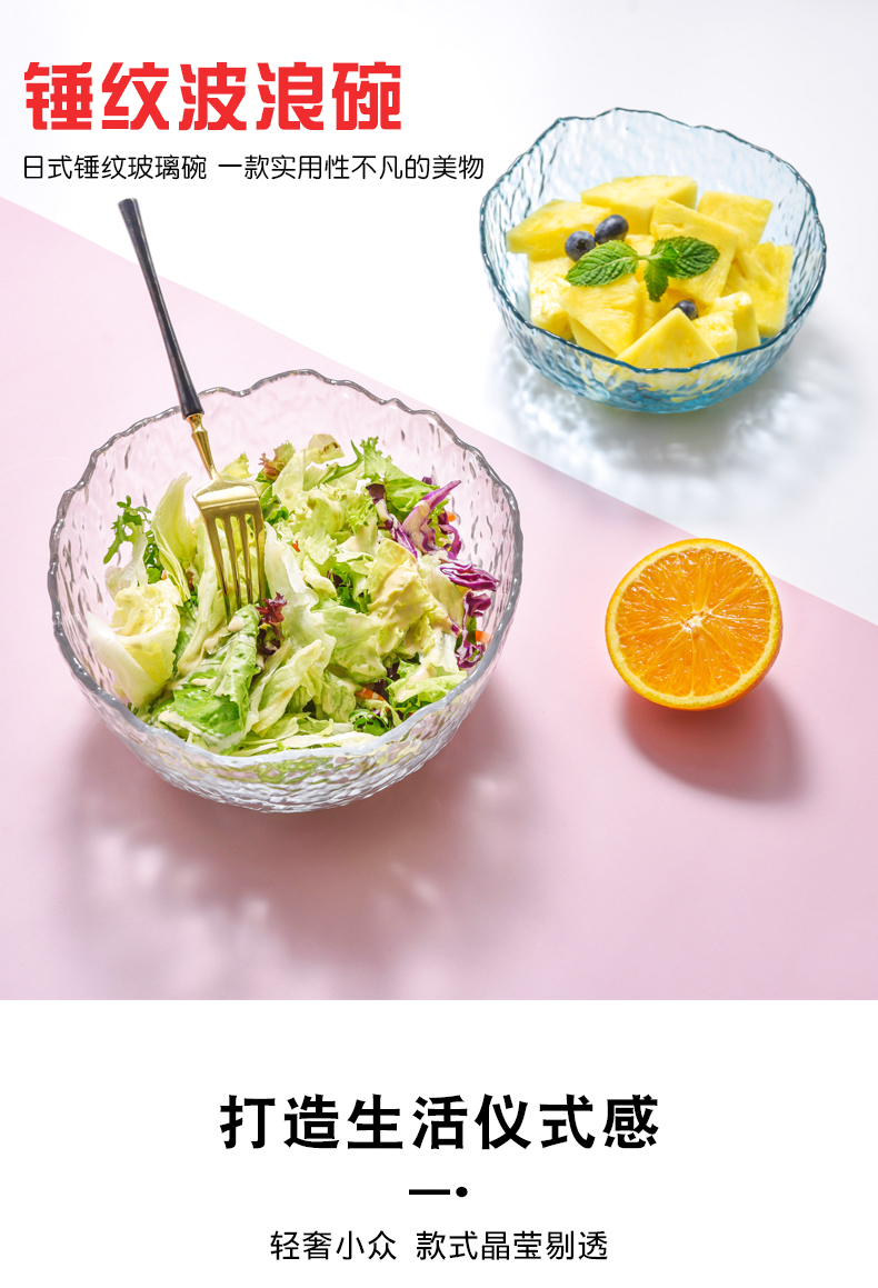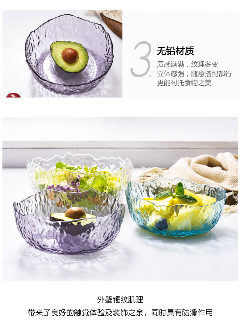lws japanese style hammer pattern wave glass bowl fruit plate vegetable salad bowl plate household creative trending dessert bowl 中文版