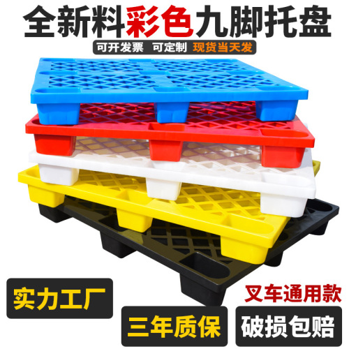 网格九脚托盘采用全新HDPE原材料,色泽好!不管是日常堆码使用还是移动使用,都非常方便!另外我们的托盘可以和手动叉车和机械叉车配套使用,详细的细节请咨询在线客服!