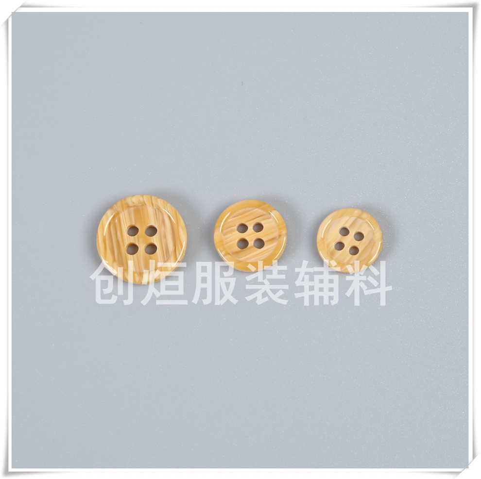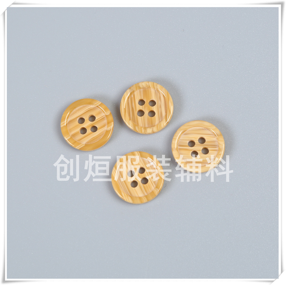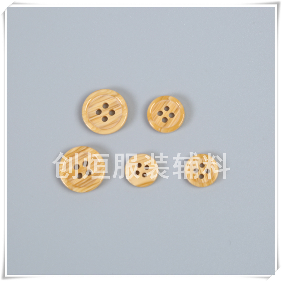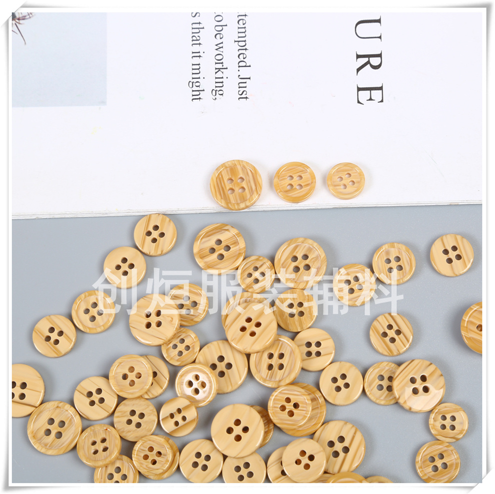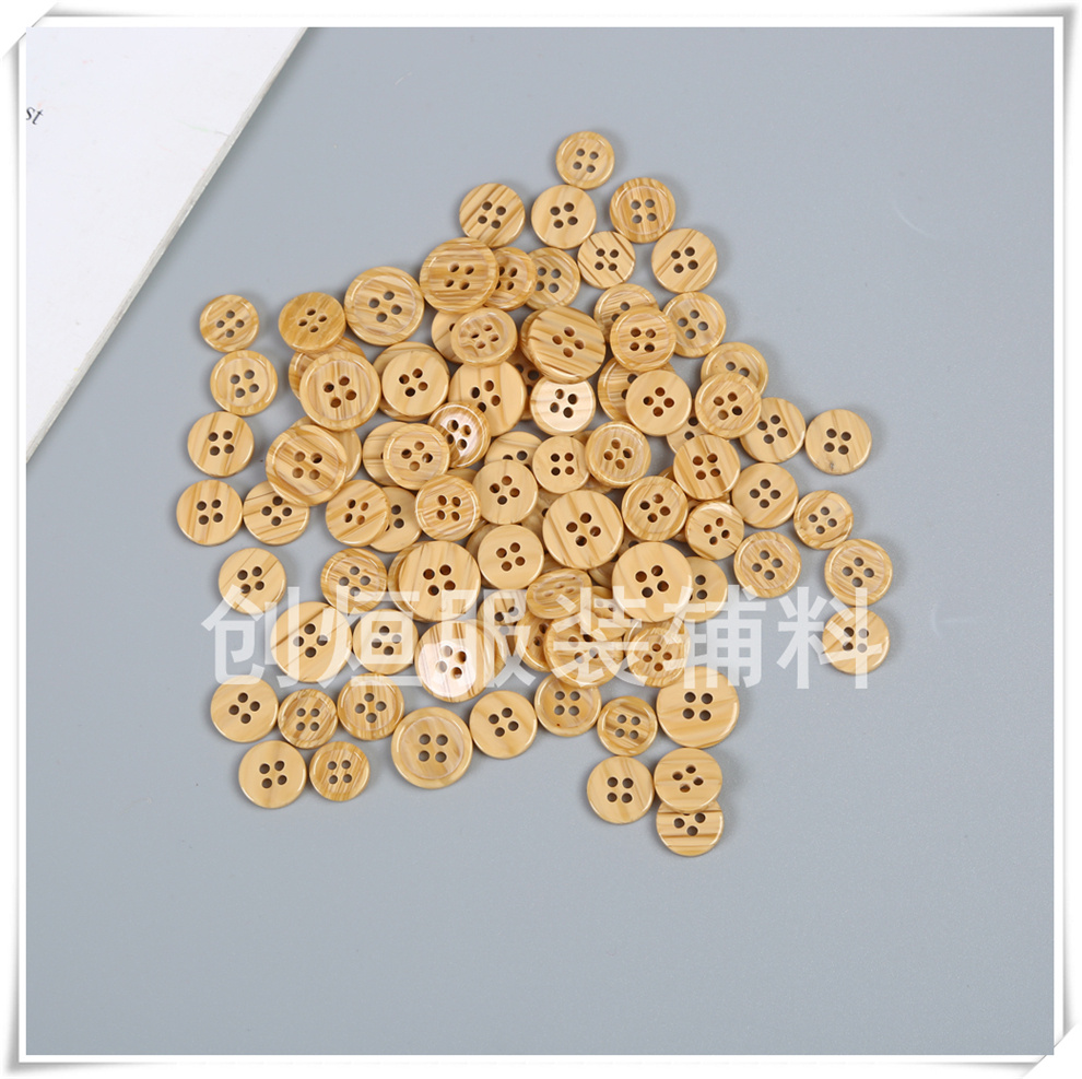 Product Name:In-stock supply of new style imitation wood grain four-eye resin buttons with small fine edges, classic wood grain universal matching buttons for trench coats and overcoats.