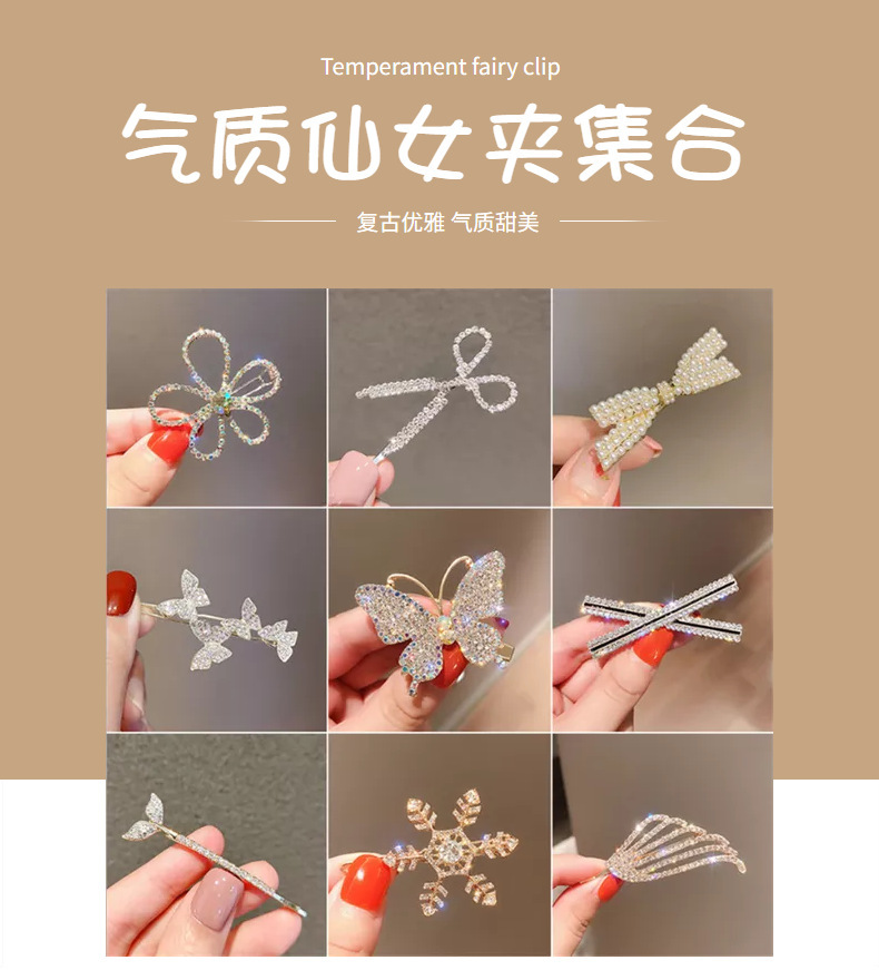 2022 new rhinestone barrettes duckbill hair accessories pearl bobby edge clip back head clip headdress liu haifa 中文版