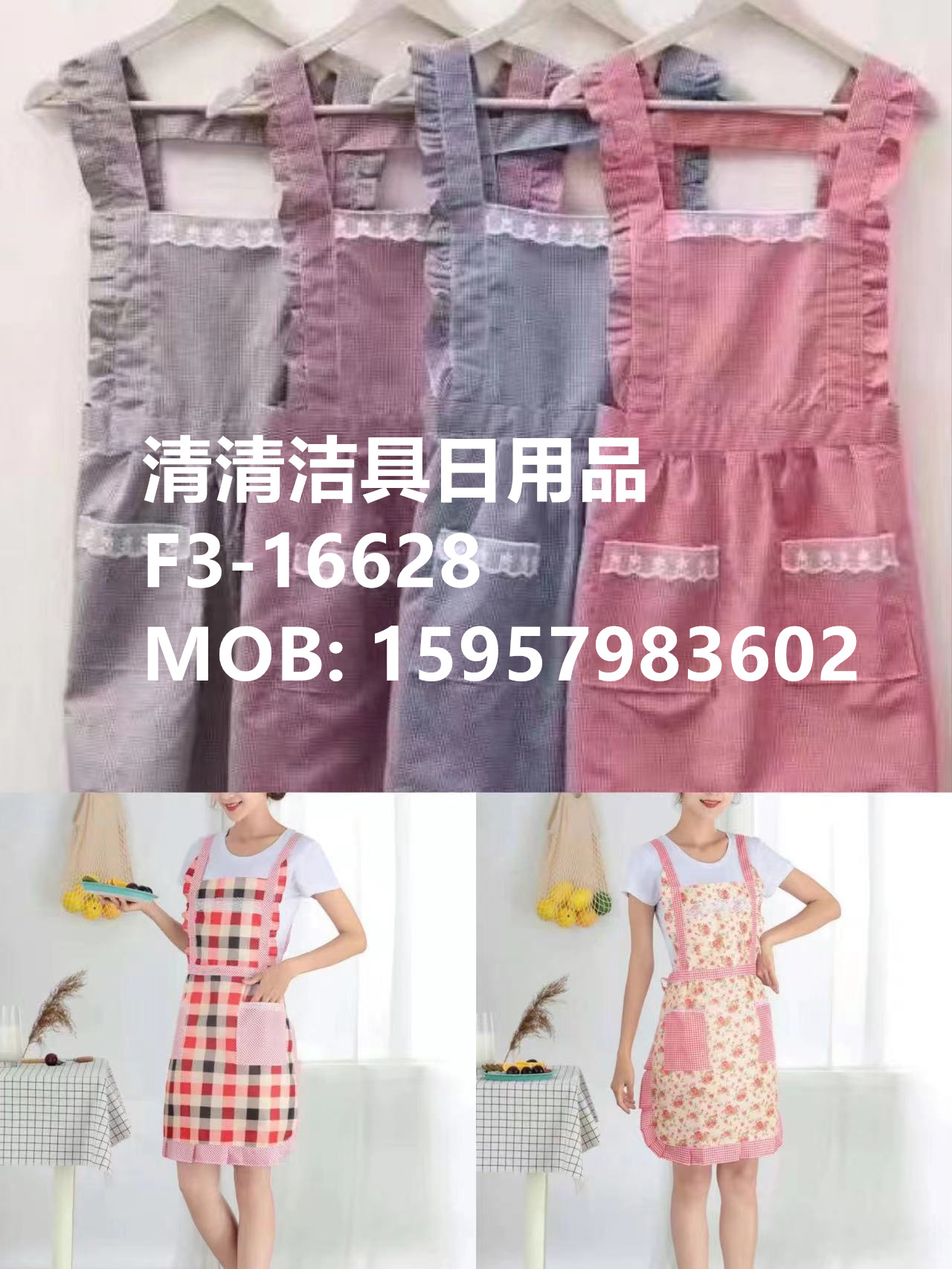 Fabric aprons, printed aprons, princess aprons, and belt aprons. Please contact us for pricing.