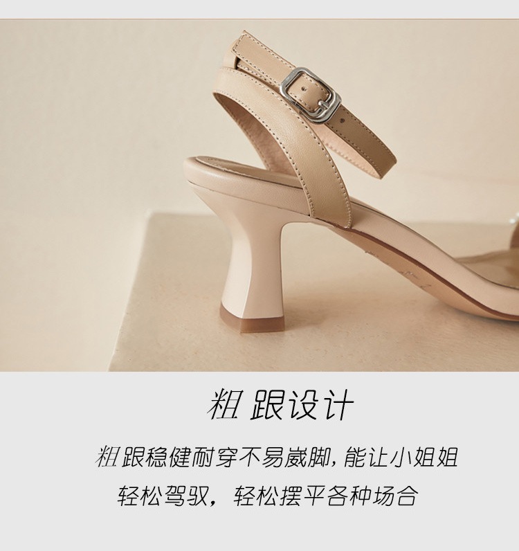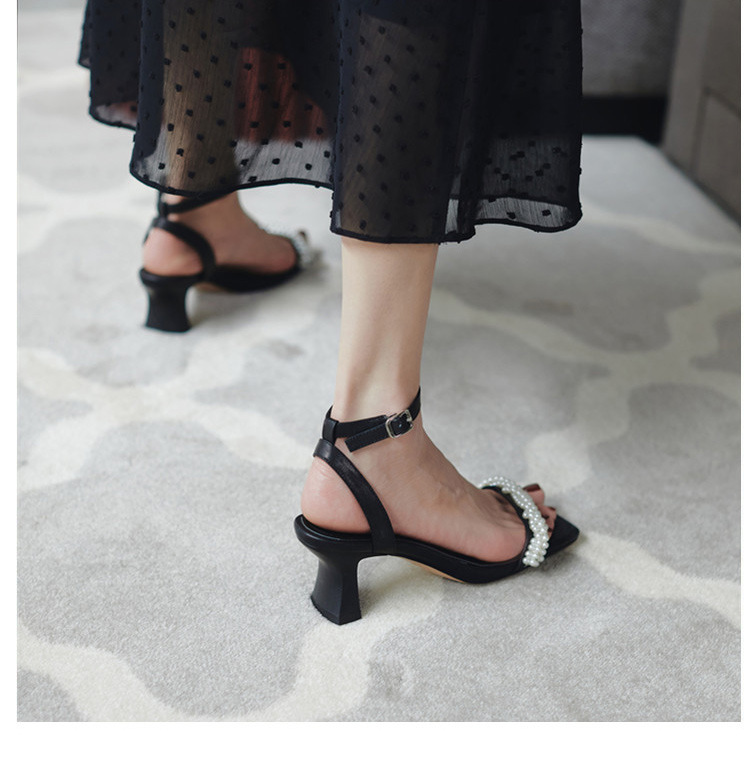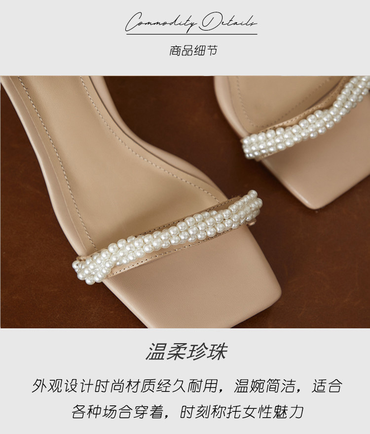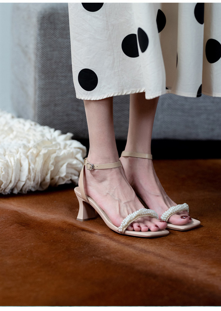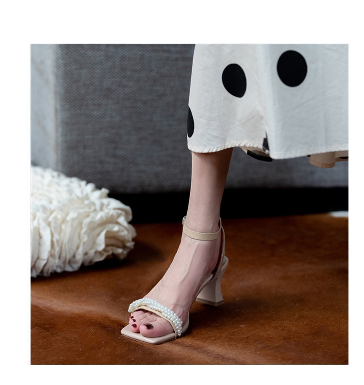 Ins Style ~ Super Beautiful! Summer Pearl Strap Sandals Fairy Style High Heels Chunky Heel All-Matching Square Toe Beautiful 中文版