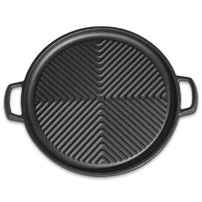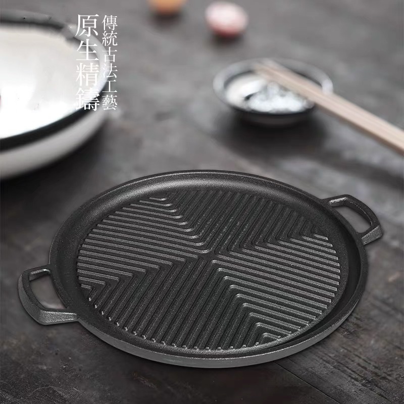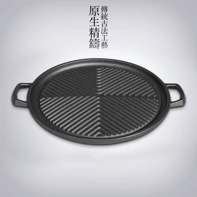 korean style barbecue plate binaural baking pan cast iron steak plate foreign trade 中文版