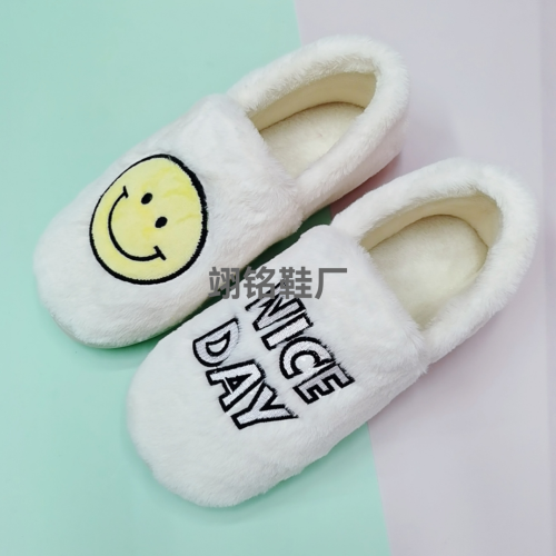 embroidered smiley letter long-staple cotton shoes comfortable soft bottom home cotton slippers plus size men's and women's bedroom european and american foreign trade new 中文版