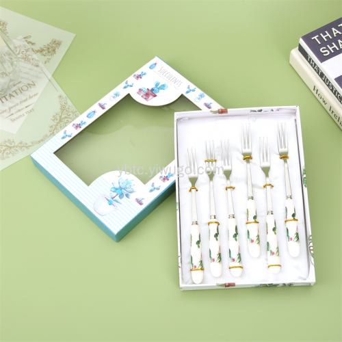 pink gift box ceramic tableware ceramic knife, fork and spoon tableware set kitchen supplies ceramic gift suit