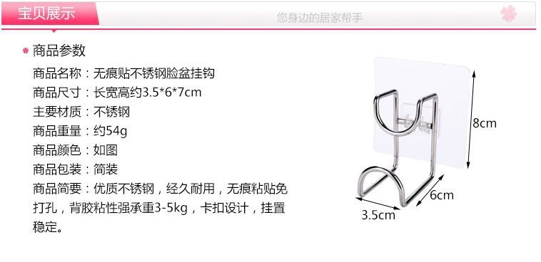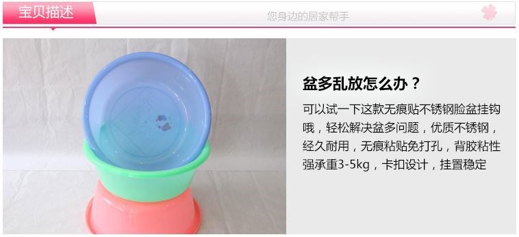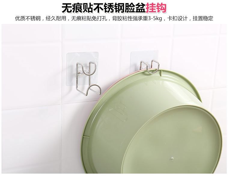 Xowang Stainless Steel Washbasin Stand Punch-Free Strong Sticky Hook Bathroom Wall Suction Cup Hanging Washbasin Stand Storage Hook