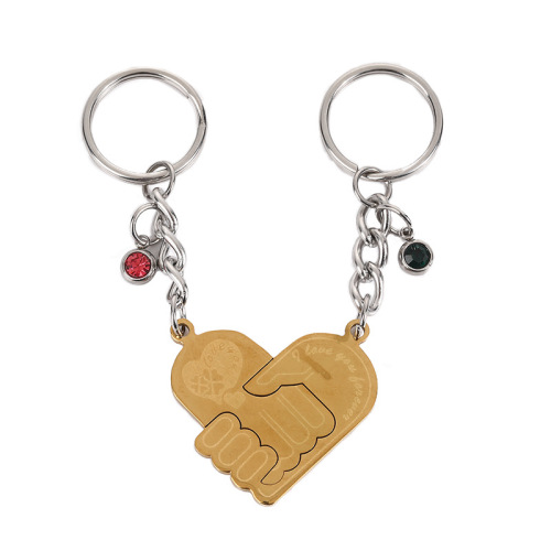 european and american golden lock stainless steel handshake heart-shaped multi-part accessories personalized fashion couple simple all-match key chain ornament 中文版