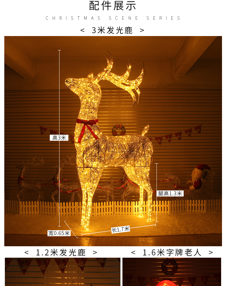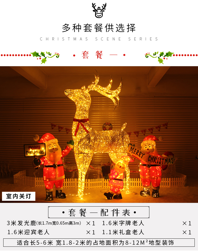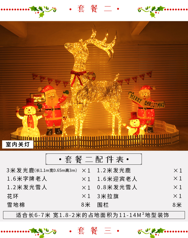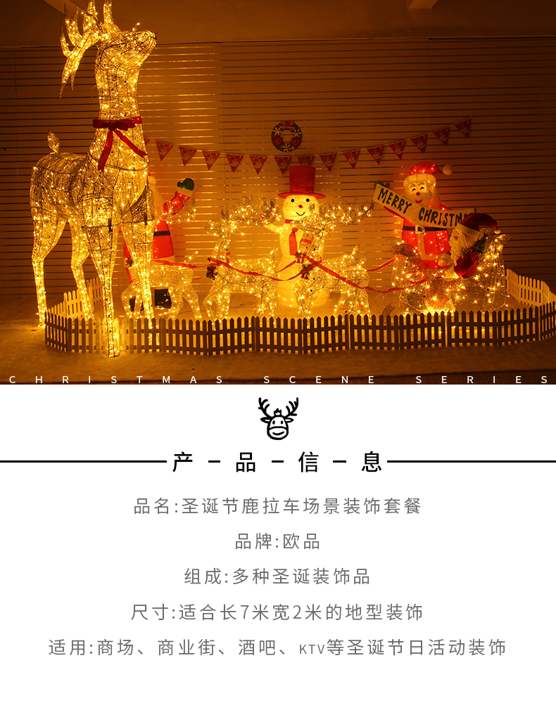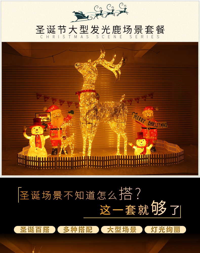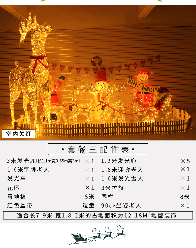 Christmas 3 M Elk Large Luminous Scene Santa Snowman Hotel Mall Bar Doorway Decorations 中文版