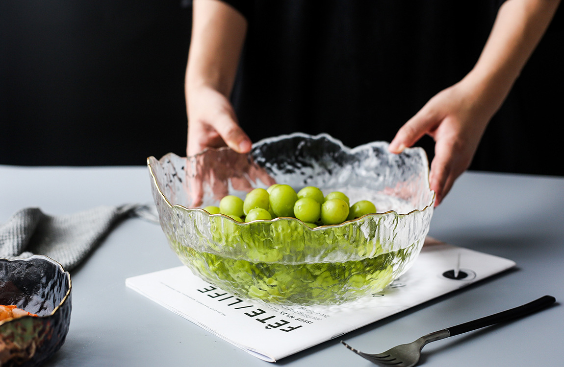 ld japanese style golden trim glass bowl large transparent irregular vegetables and fruits salad bowl internet sensation bowl dessert bowl 中文版