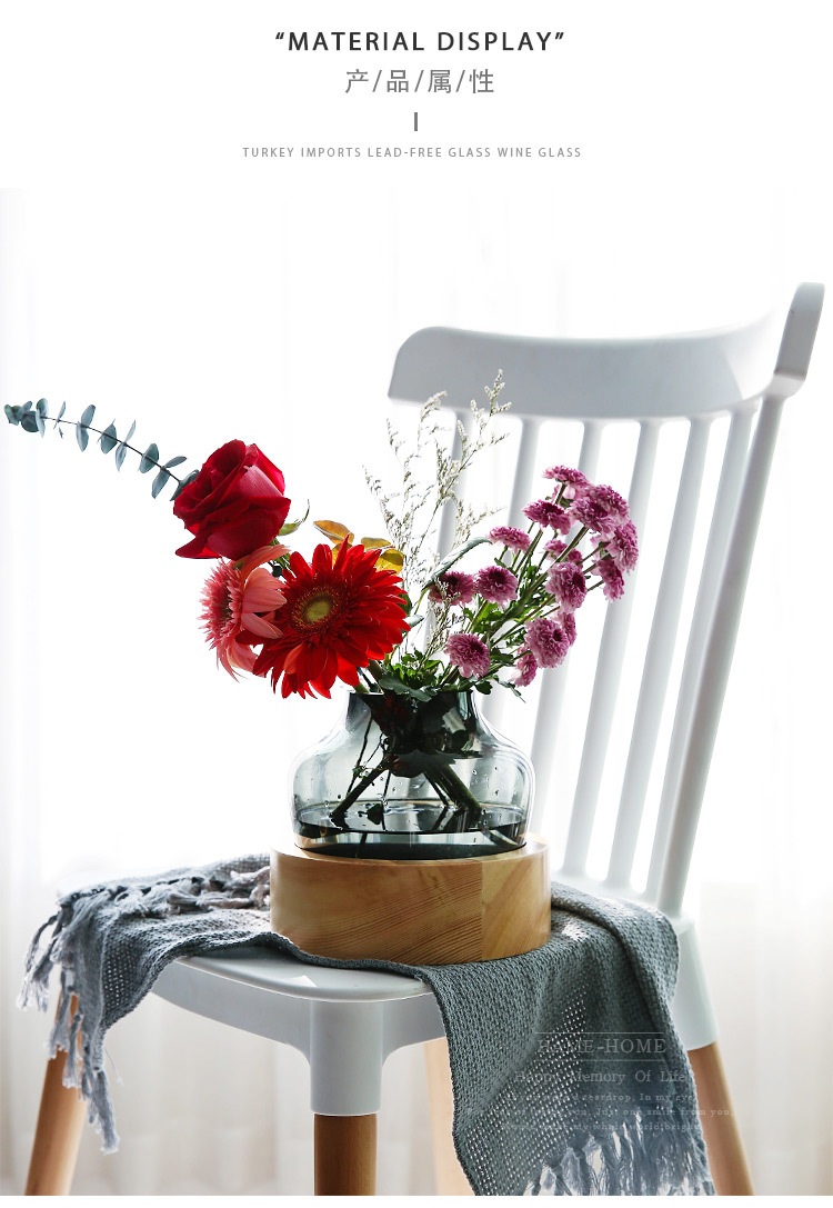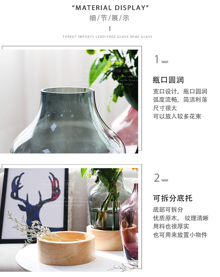 ld ins nordic simple glass vase creative wooden base flower arrangement craft flower vase 中文版