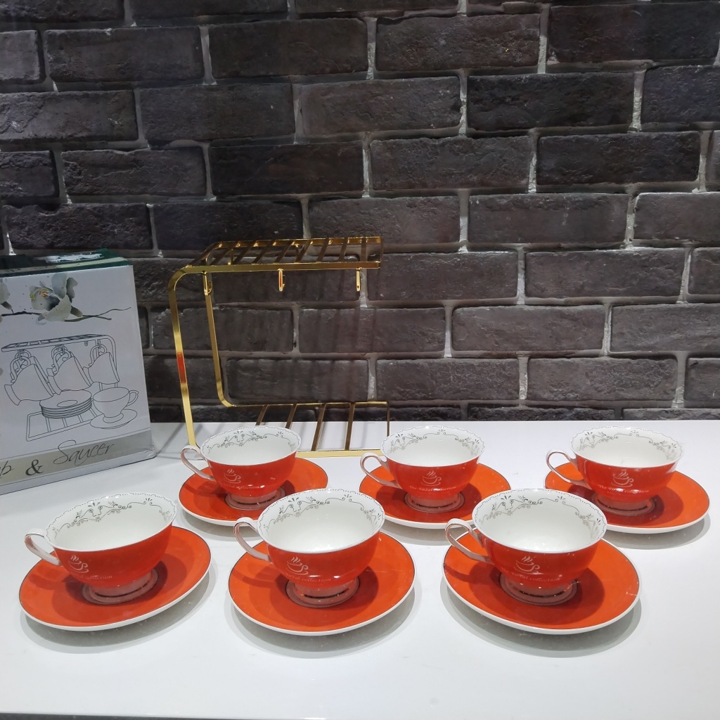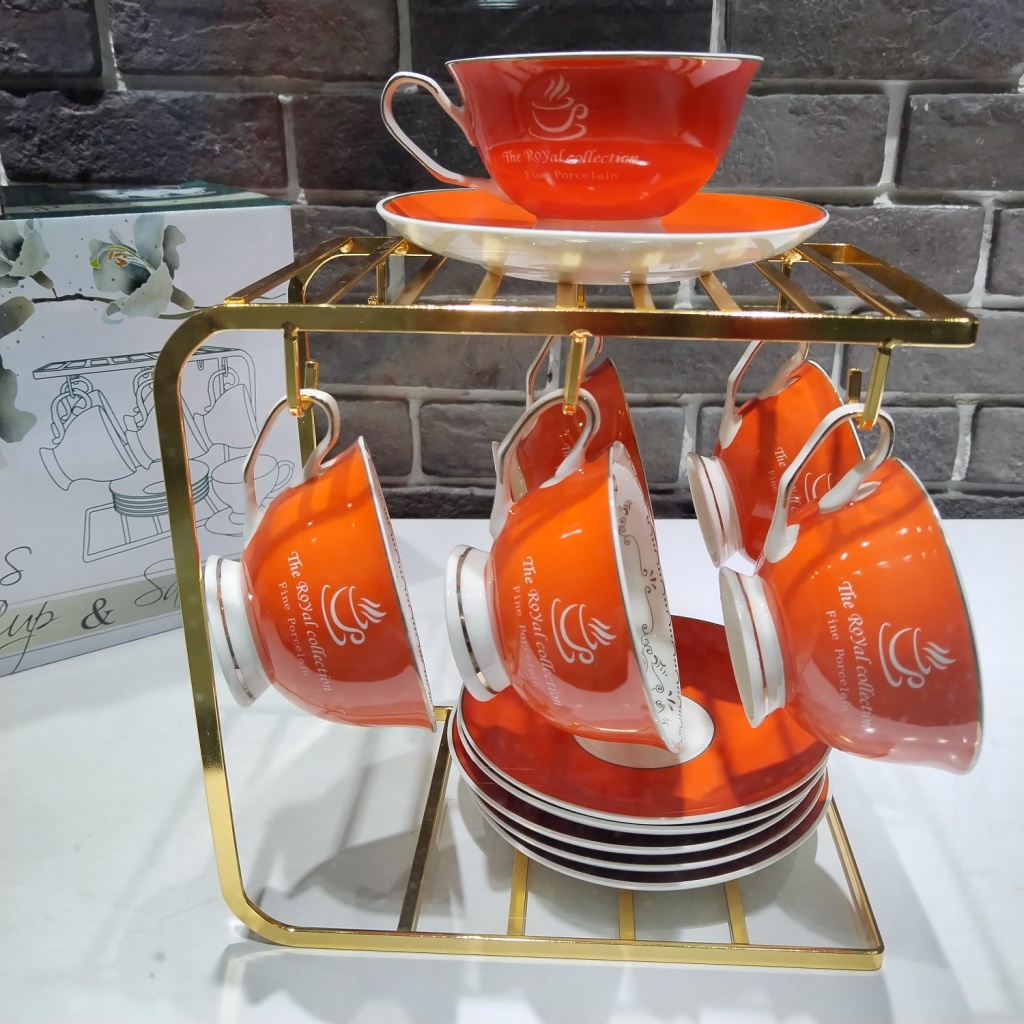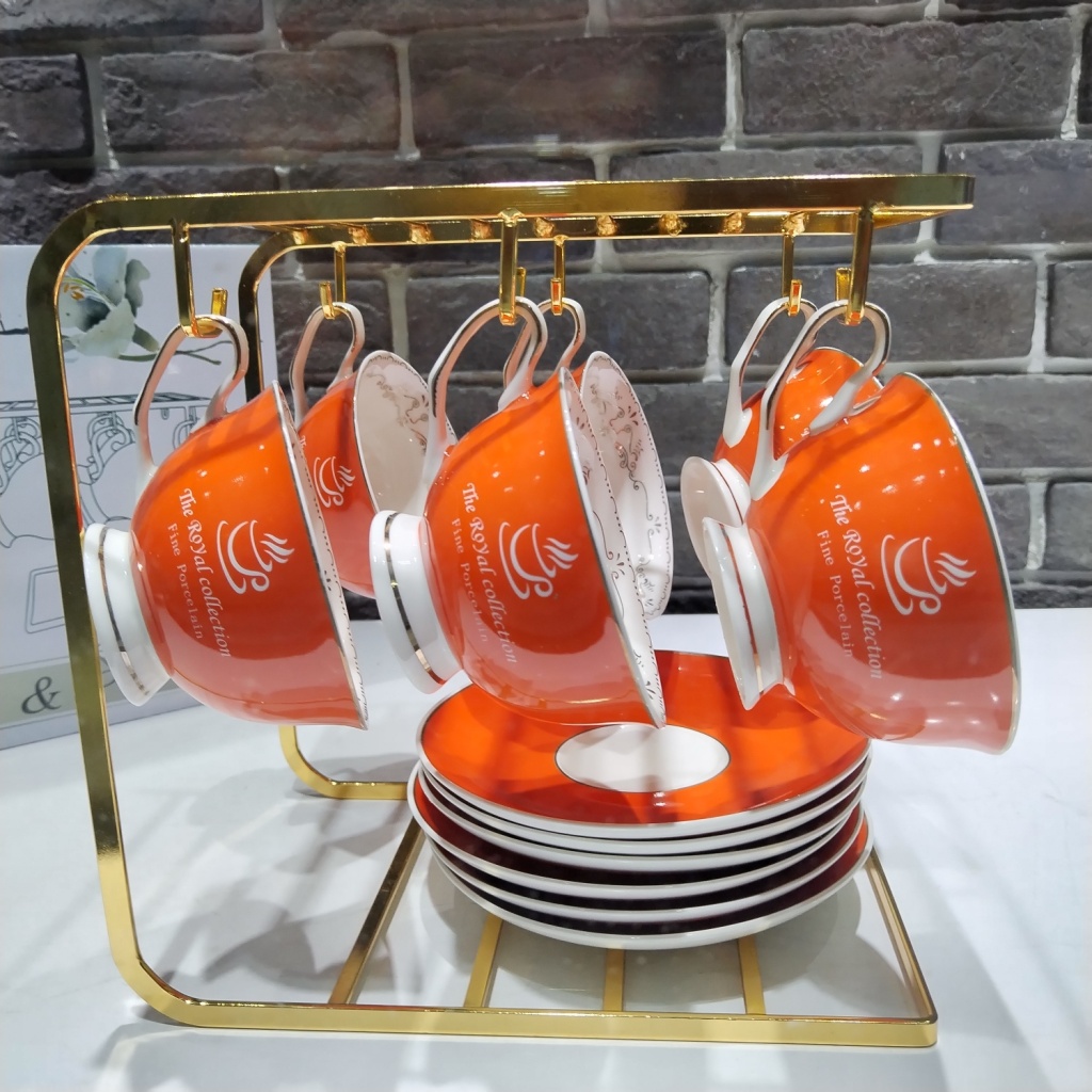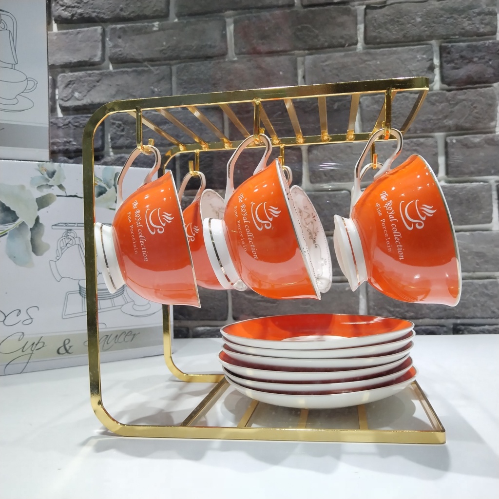 jingdezhen ceramic coffee set suit with rack 6 cups 6 plates coffee set kitchen supplies color glaze 6 cups 6 plates 中文版