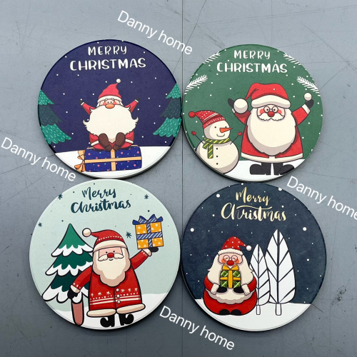christmas series coaster ceramic coaster creative coaster christmas pattern cork non-slip coaster round 10cm mat