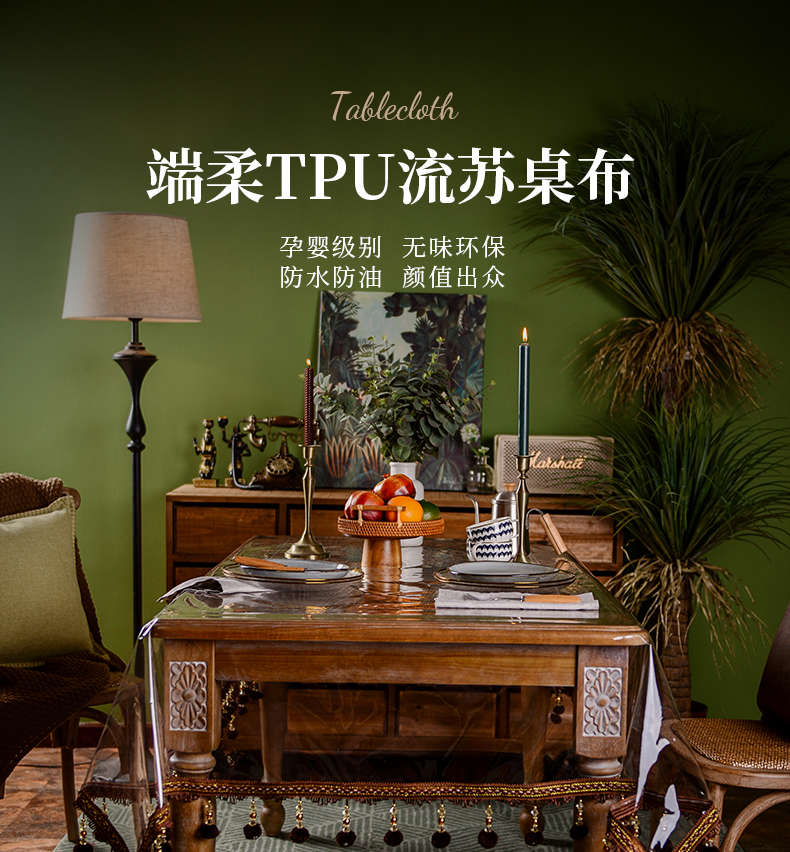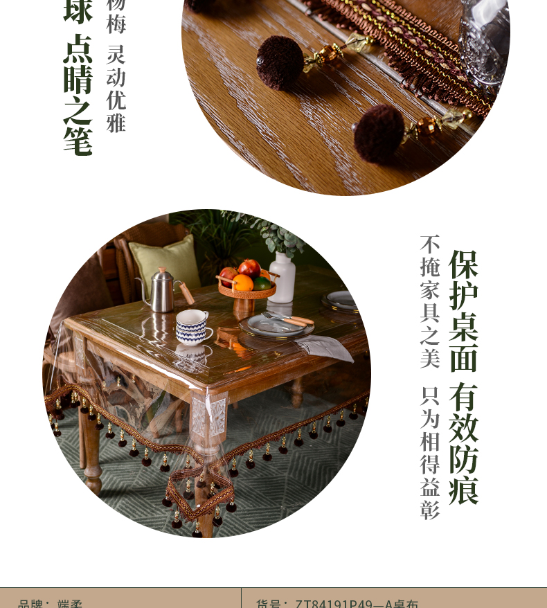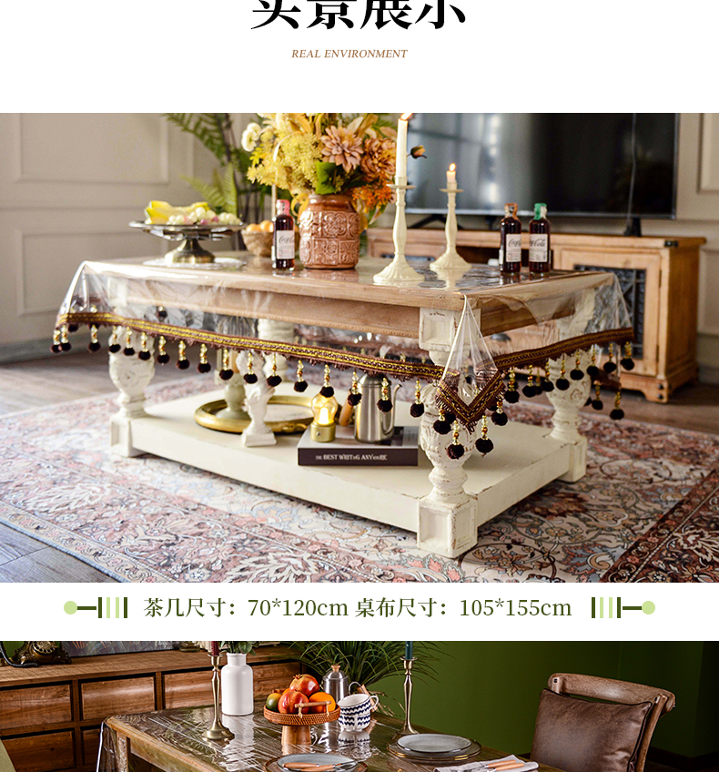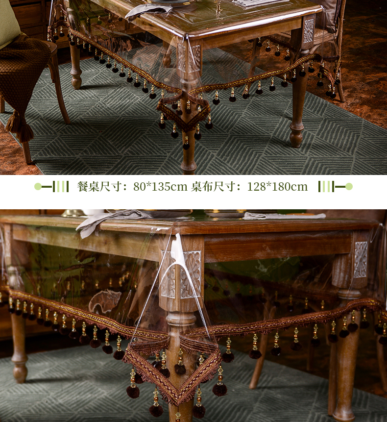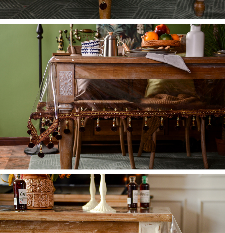 tpu environmental protection tablecloth waterproof and oil-proof disposable coffee table tablecloth transparent crystal odorless tablecloth tassel american ins style 中文版
