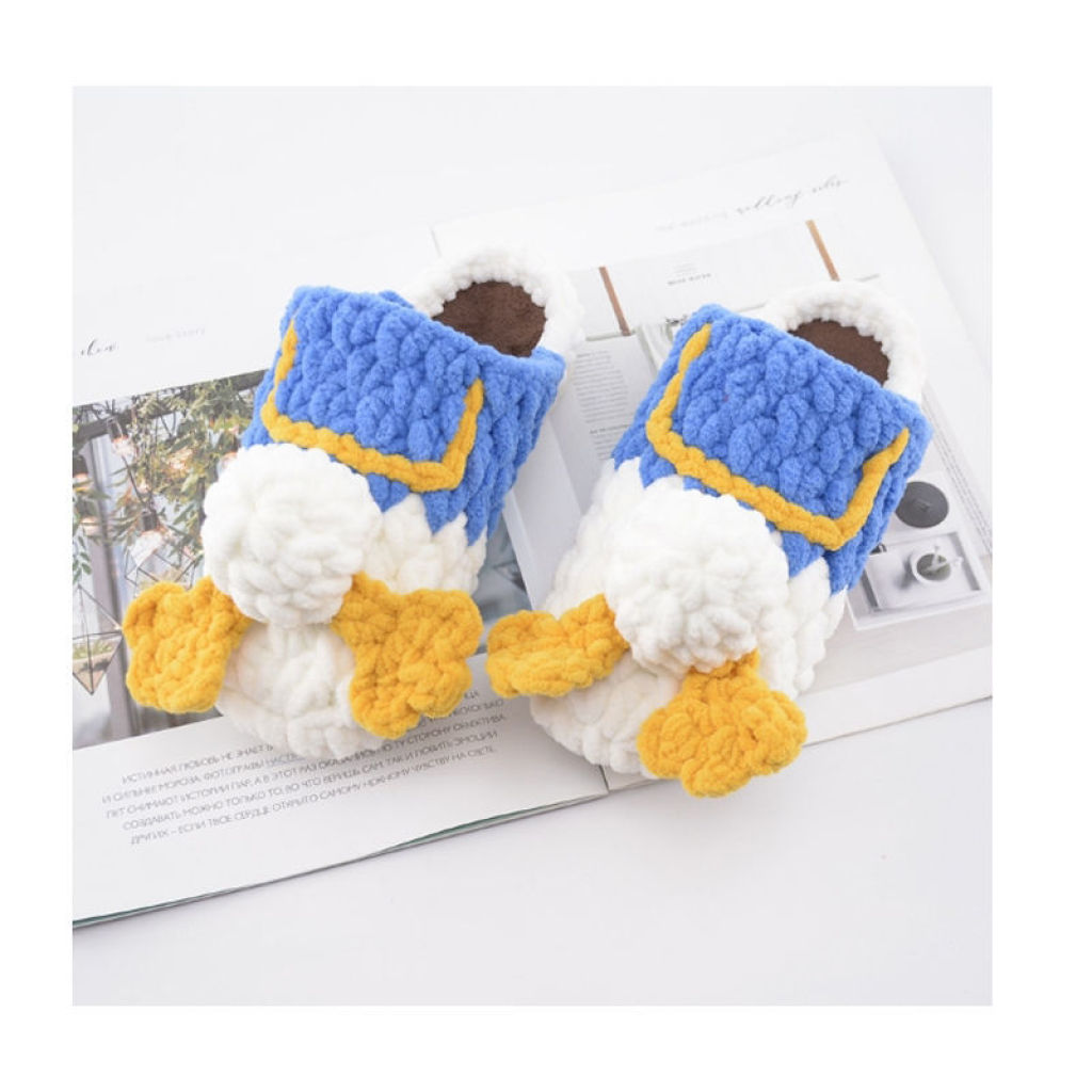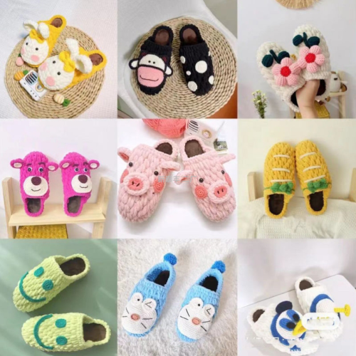 handmade knitting wool plush cartoon animal flower indoor slippers male and female home autumn and winter warm non-slip 中文版
