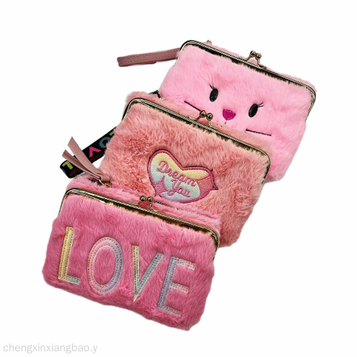 Bags Clip Bag Detachable Horizontal Bag Trendy Wallet Plush Bag Ribbon Wallet Mobile Phone Bag Clutch 中文版