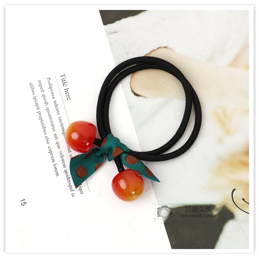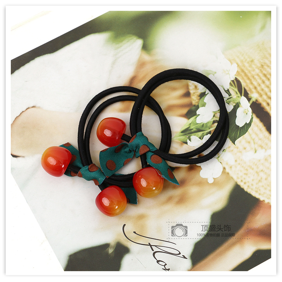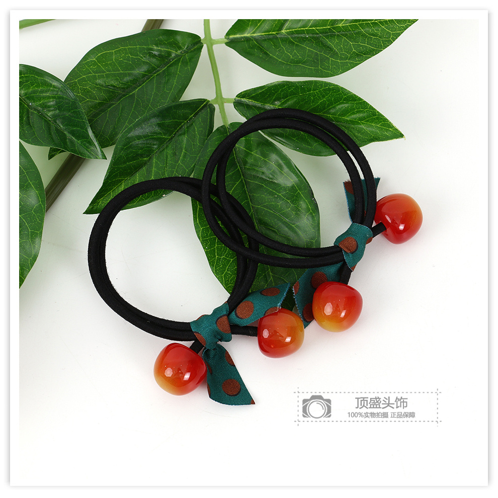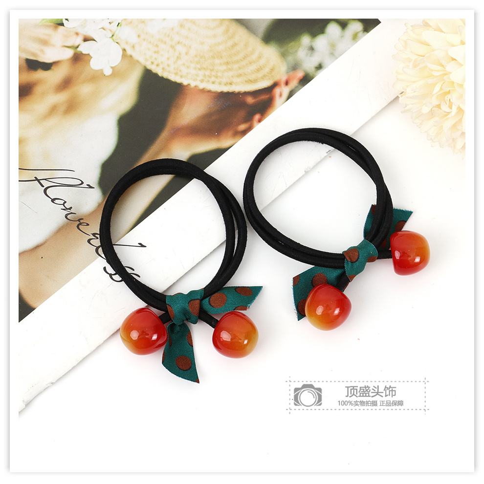 korean cute cherry hair ring polka dot ribbon bow lady temperament hair rope ponytail hair accessories sweet rubber band 中文版