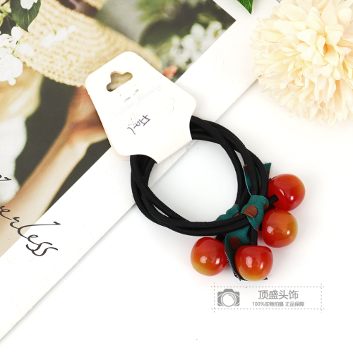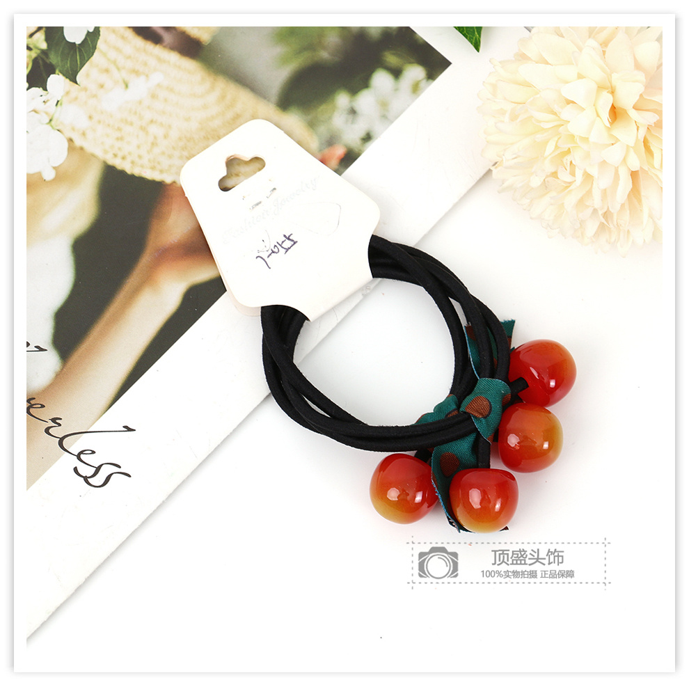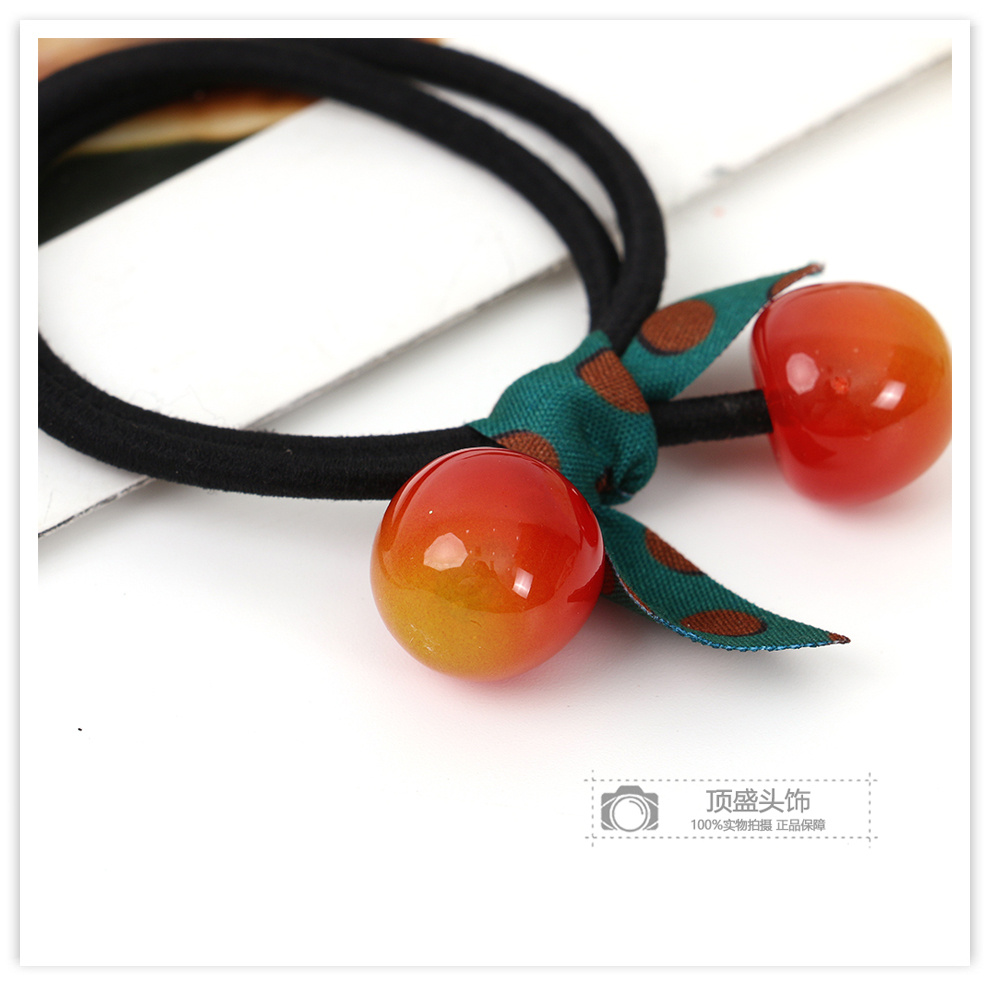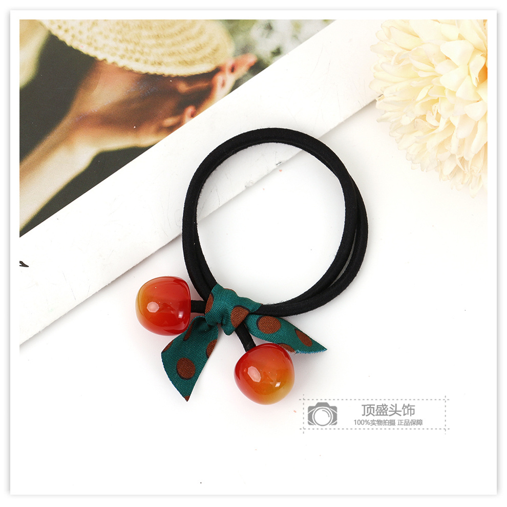 korean cute cherry hair ring polka dot ribbon bow lady temperament hair rope ponytail hair accessories sweet rubber band 中文版