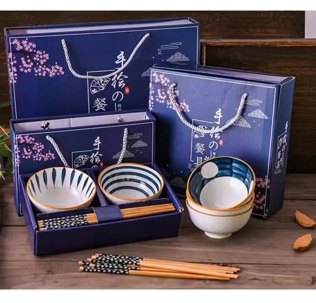 ceramic rice bowl opening meeting gifts kitchen supplies ceramic gifts tableware suit ceramic chopsticks 中文版