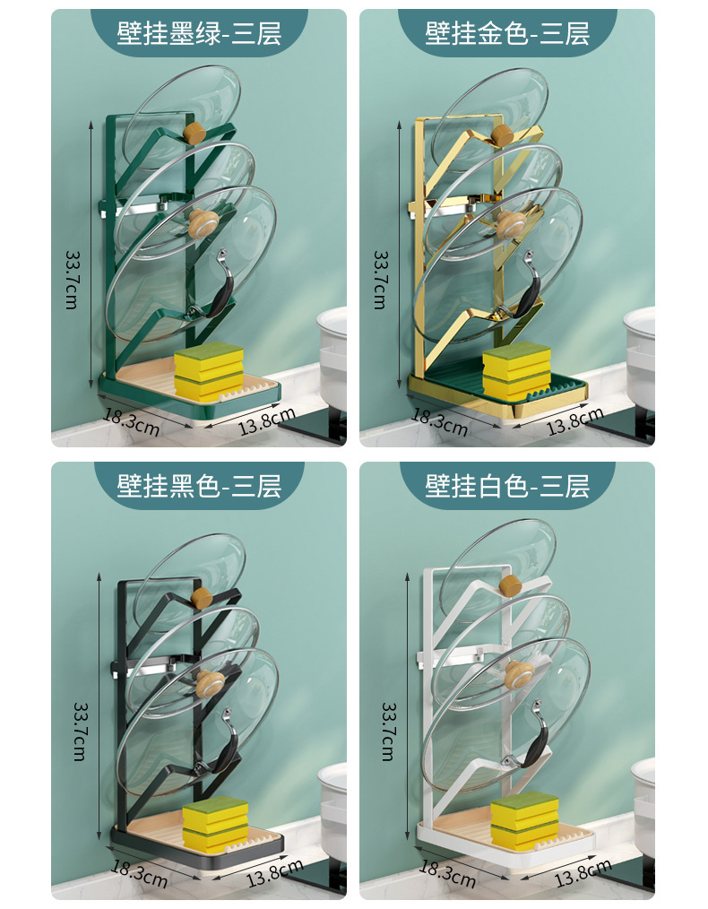 Kitchen Storage Rack Draining Pot Lid Rack Multi-Functional Truner Frame Wall Hanging Multi-Layer Chopping Board Rack 中文版