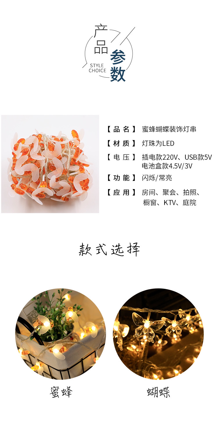 led colored lamp flashing light string light starry butterfly bee decorative lights ins bedroom room layout romantic small night lamp 中文版