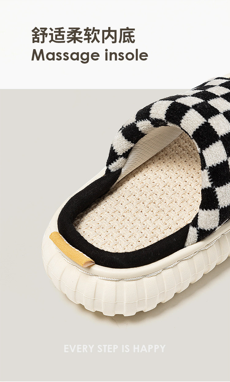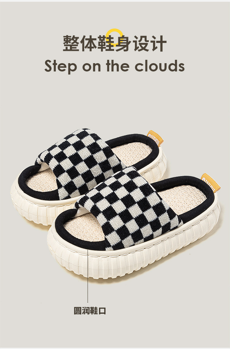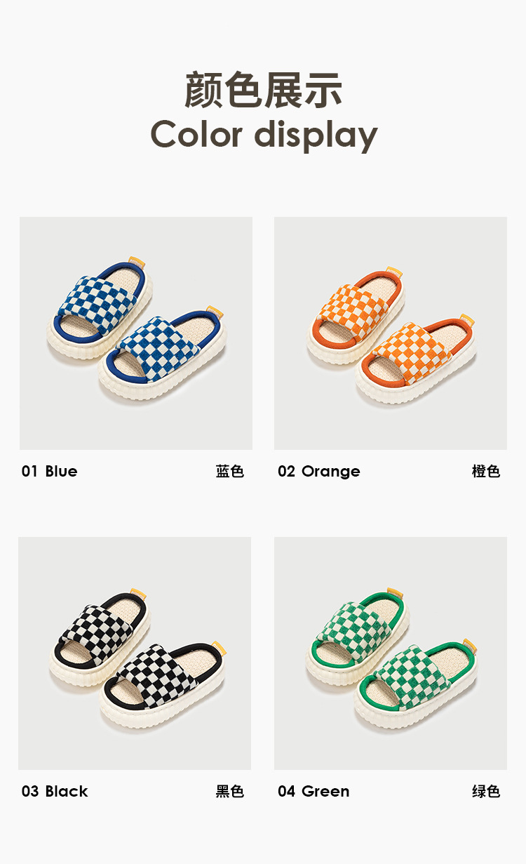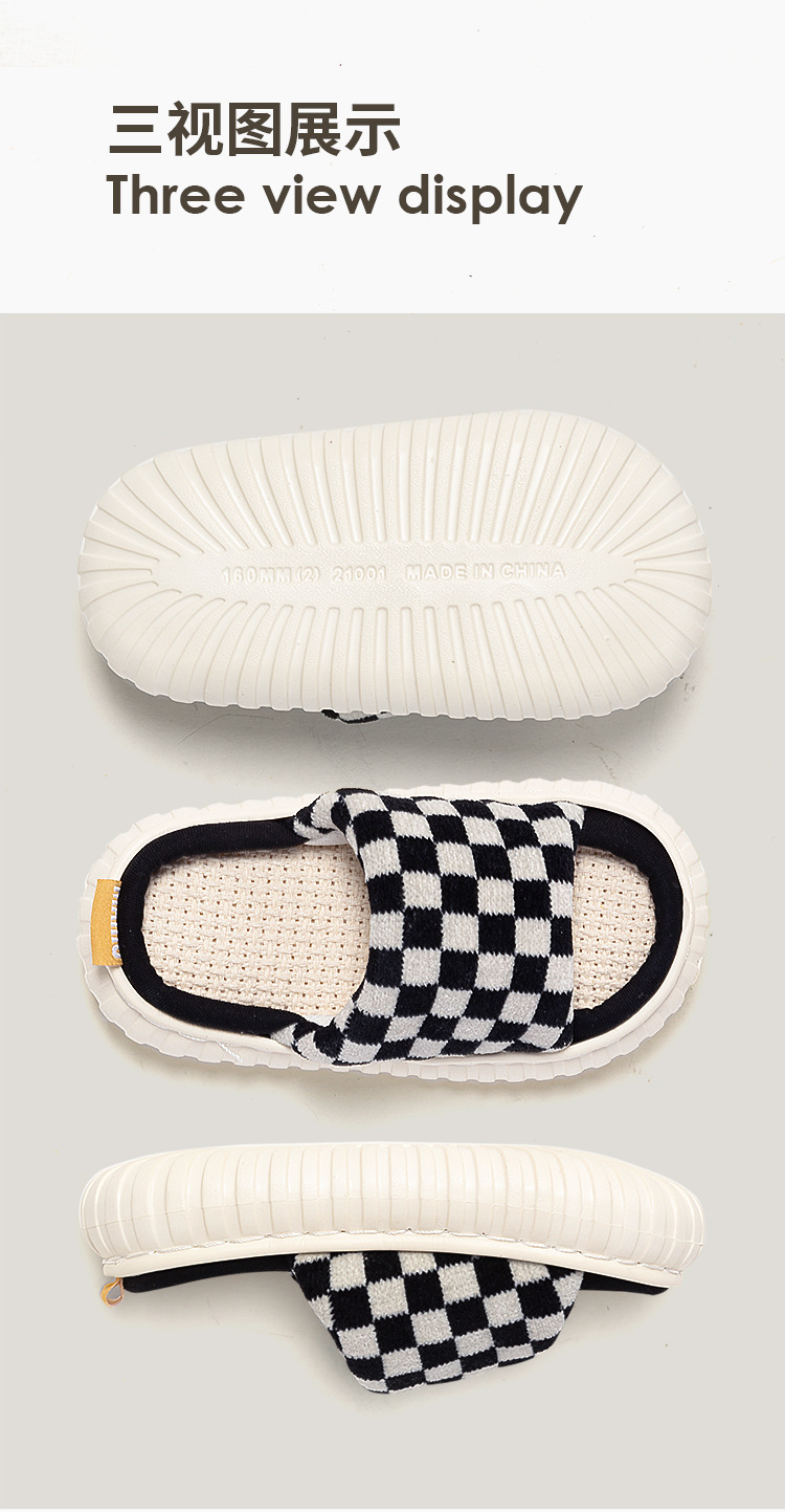 cross-border hot boys and girls cotton linen slippers four seasons home thick bottom non-slip comfortable baby's slippers houndstooth 中文版