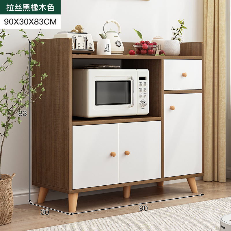 brushed black oak + white three-door one-drawer 90cm: wide table cabinet door storage