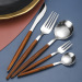 creative wooden handle portuguese tableware four-piece set 430 stainless steel knife, fork and spoon set western steak knife, fork and spoon