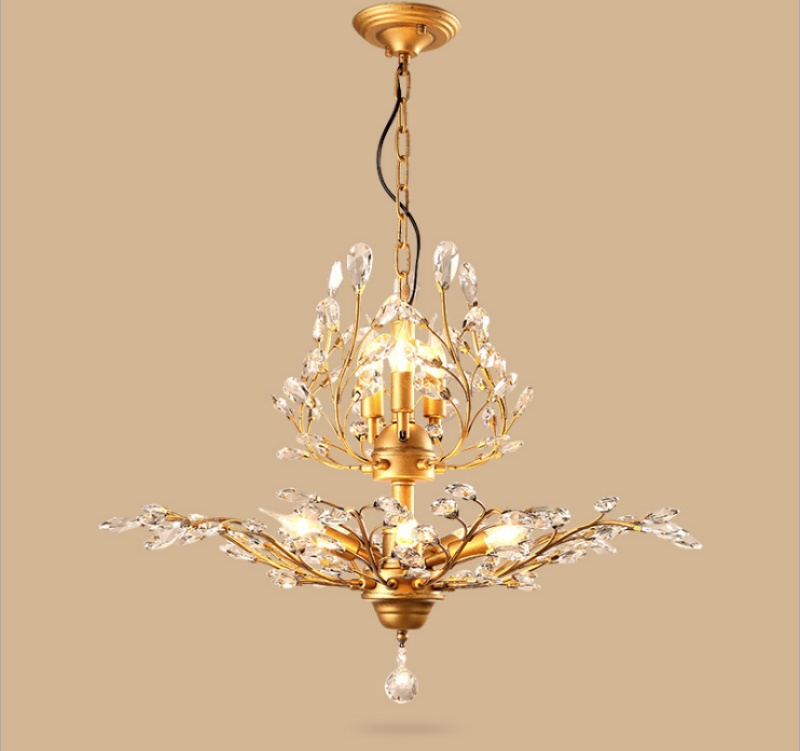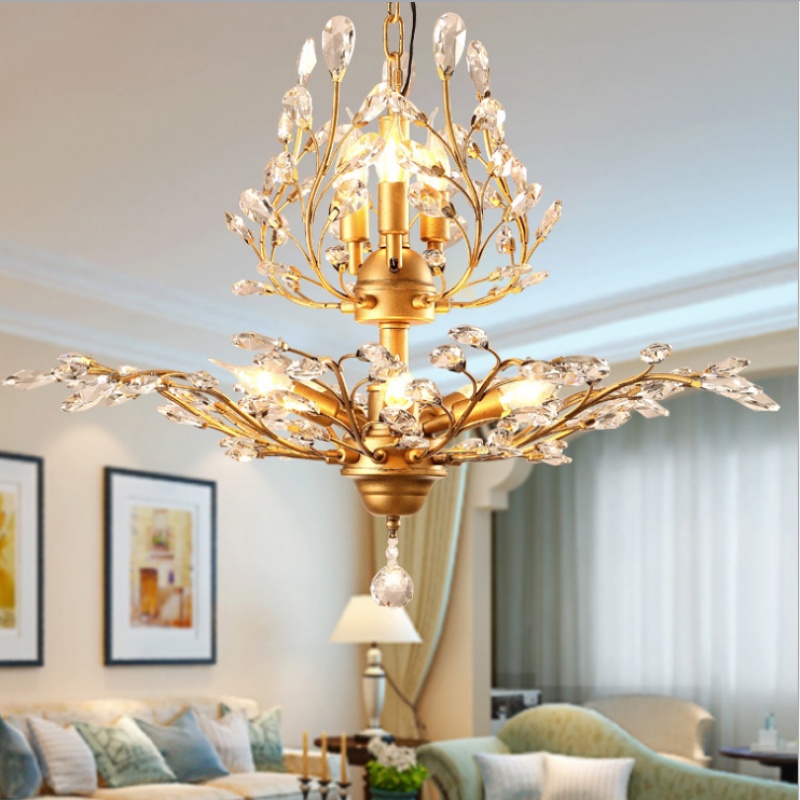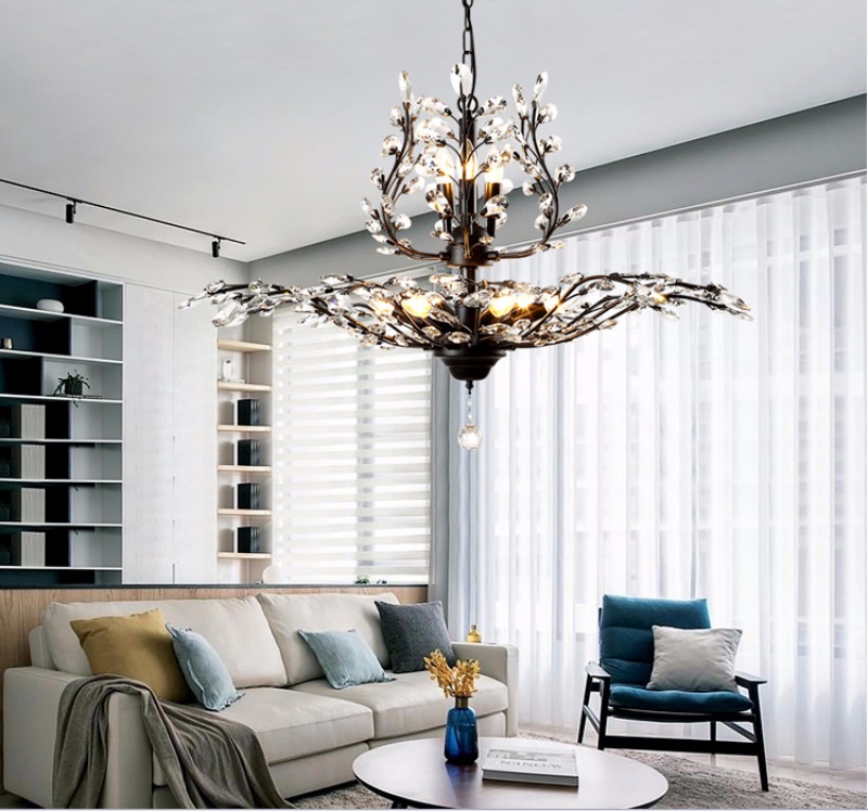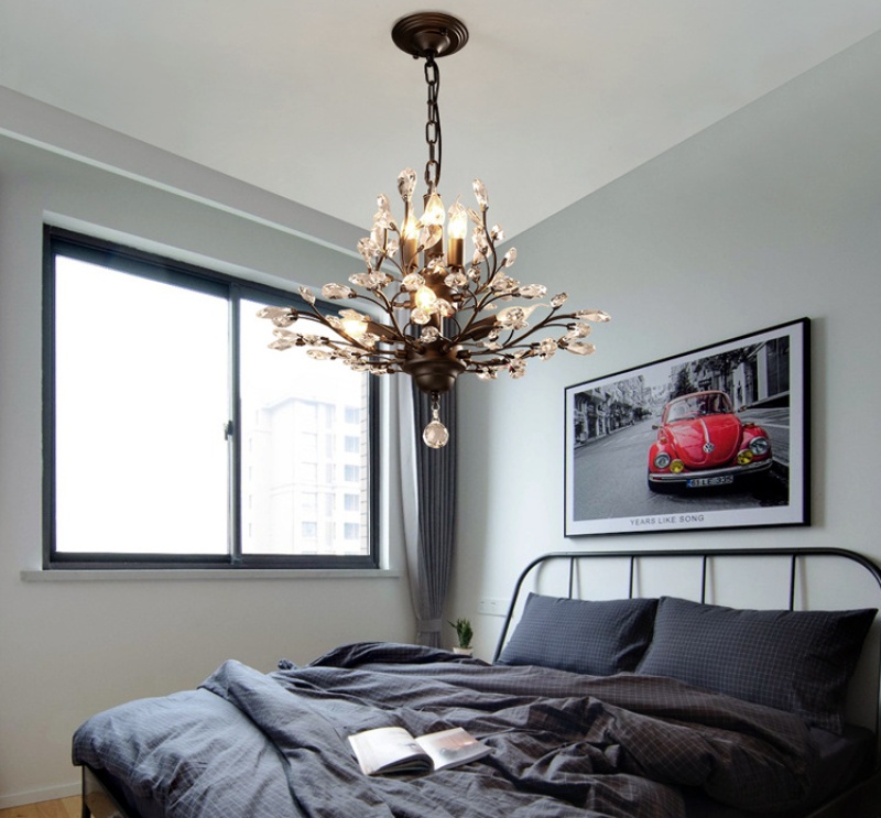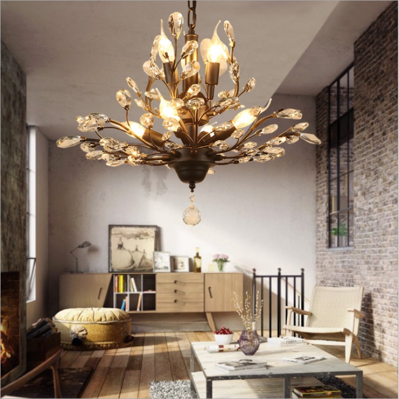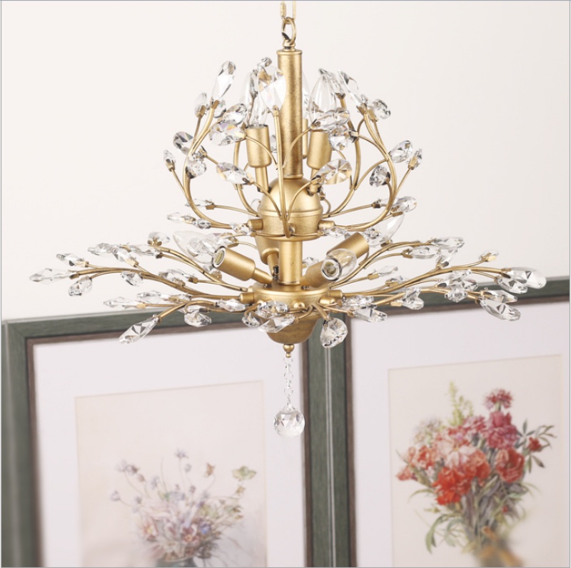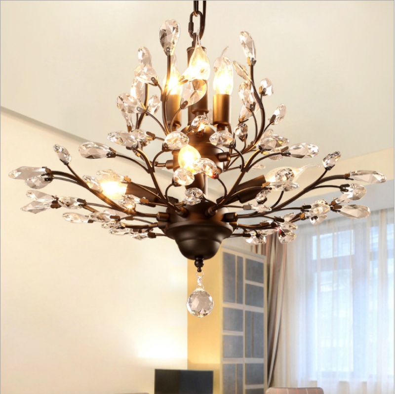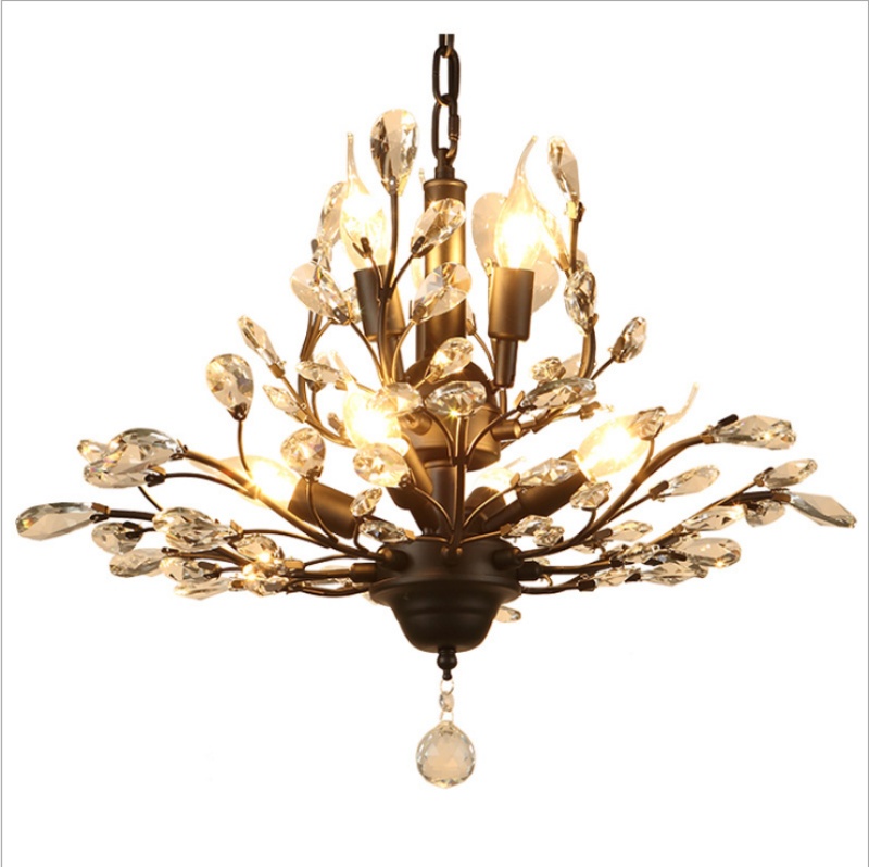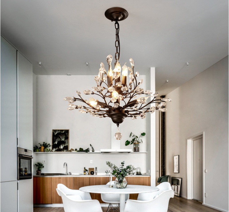 nordic retro country idyllic and creative personality living room study and bedroom restaurant chandelier crystal chandelier american wrought iron 中文版
