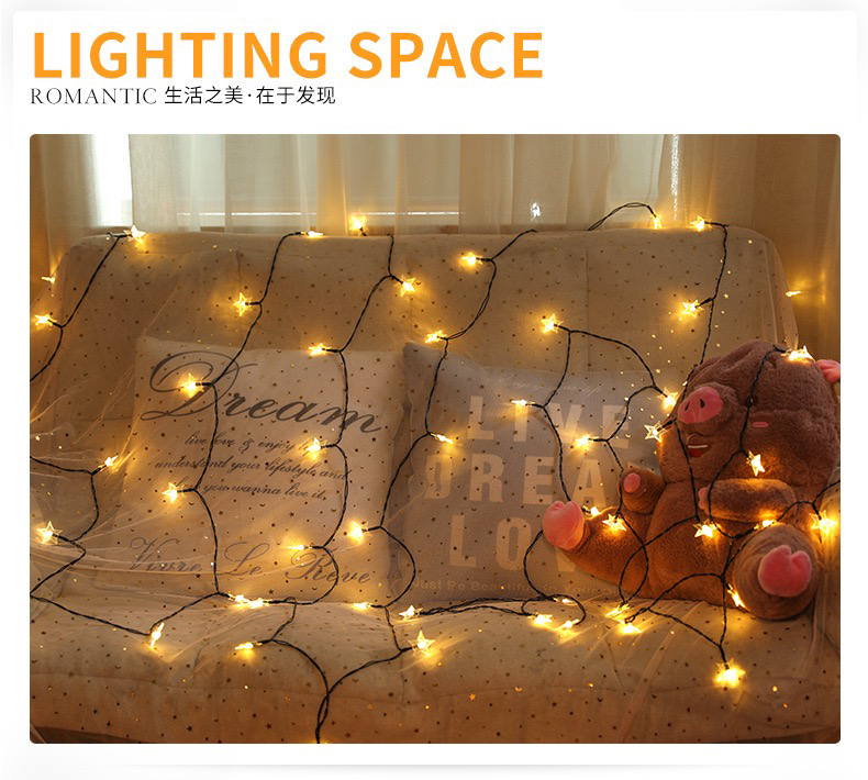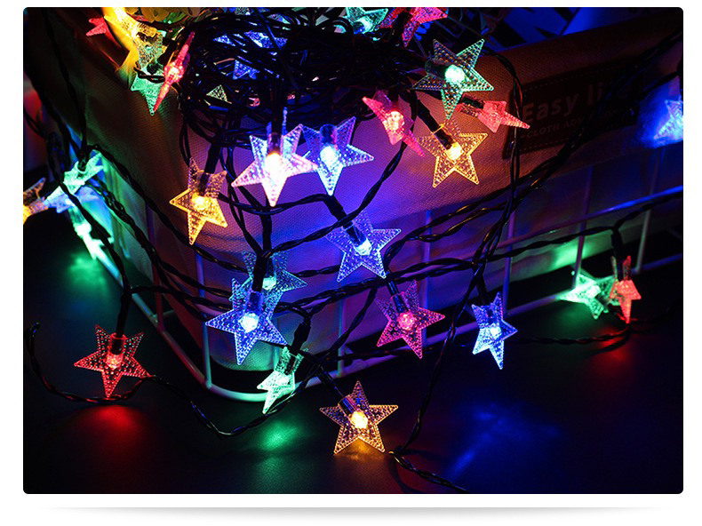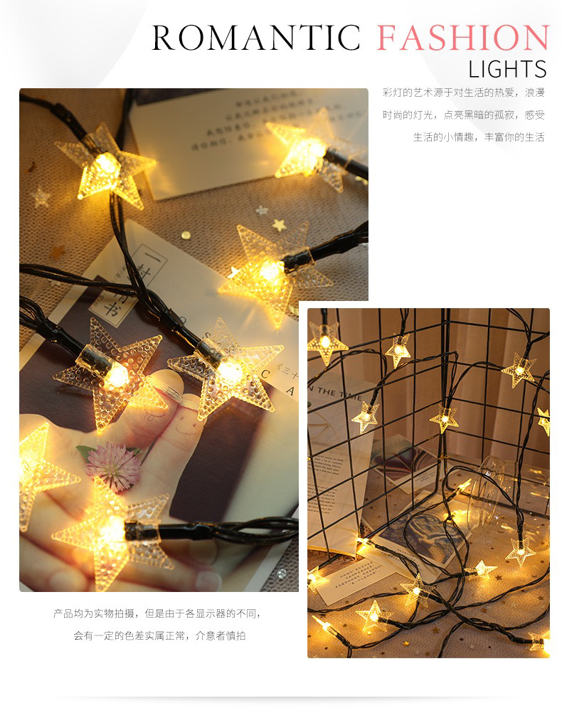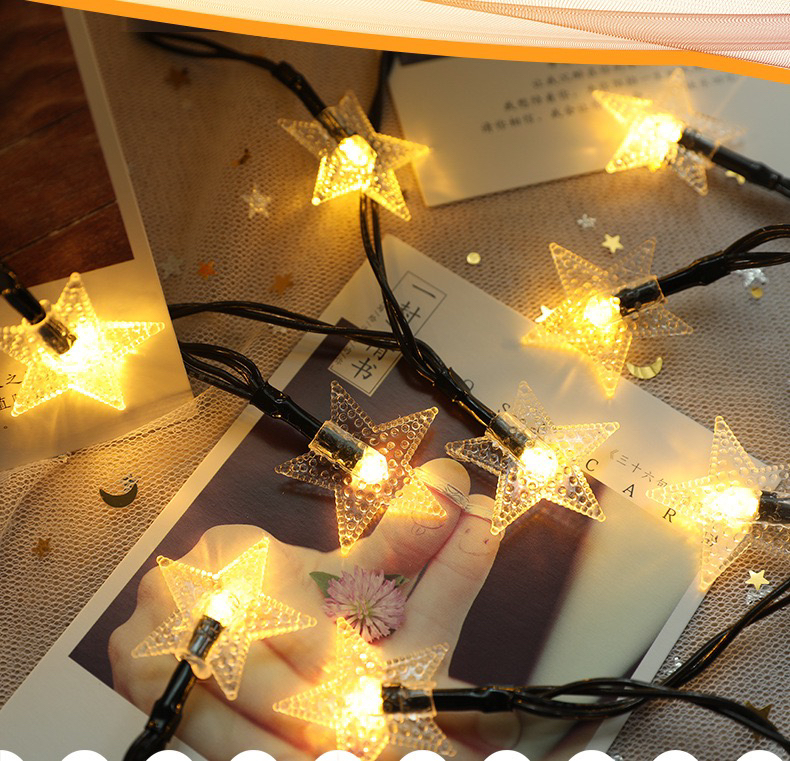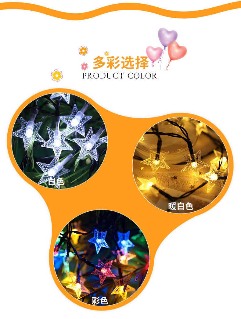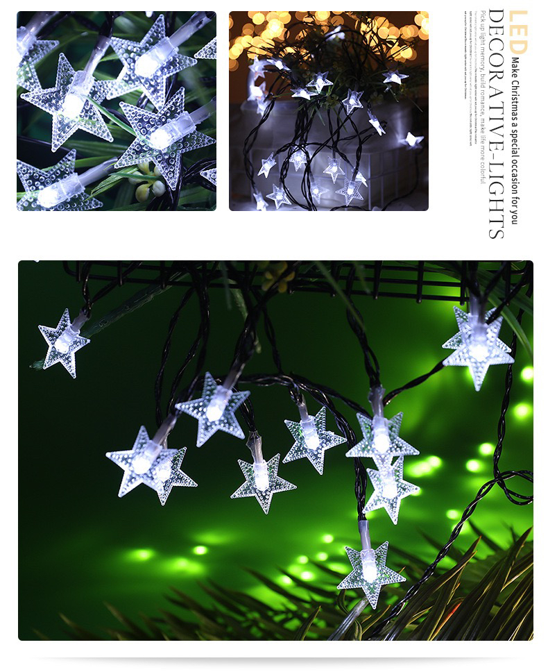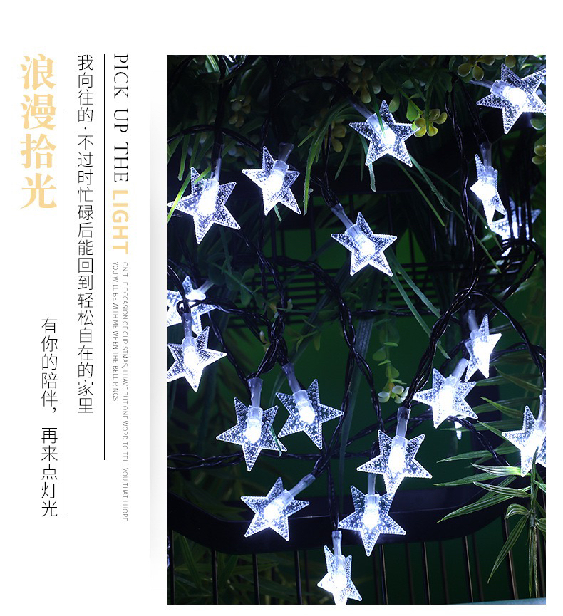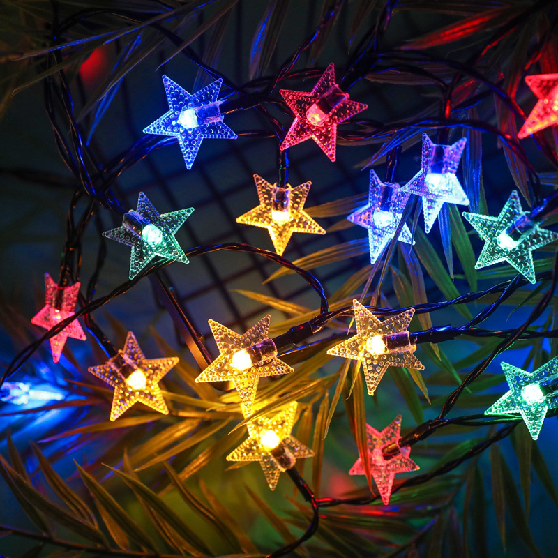 led pearl five-pointed star solar-powered string lights waterproof outdoor courtyard decoration starry christmas decoration star light 中文版