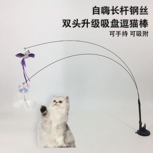 Self-entertaining long pole suction cat toy