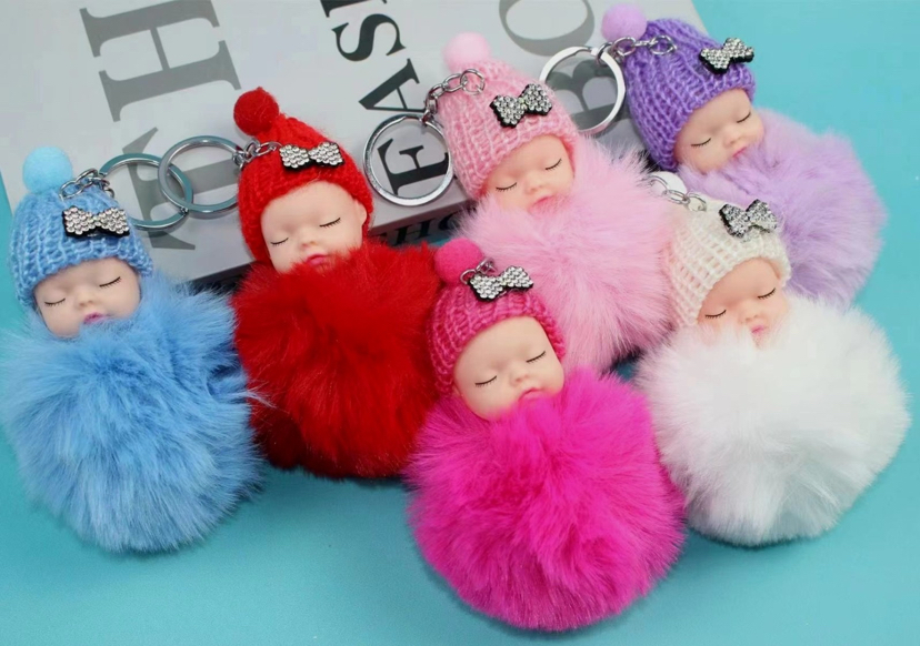 cute sleeping doll fur ball angel imitation rex rabbit plush doll keychain women's bag pendant wholesale 中文版