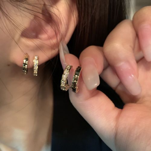 double layer ear studs with diamond