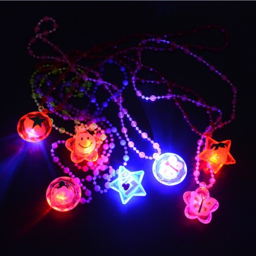 It can be hung around the neck, with flashing lights and built-in electronics. There is a switch on the back. Wearing this as a jewelry piece at parties or various concerts will make you the center of attention. When not lit, it has bright colors that little girls will love.