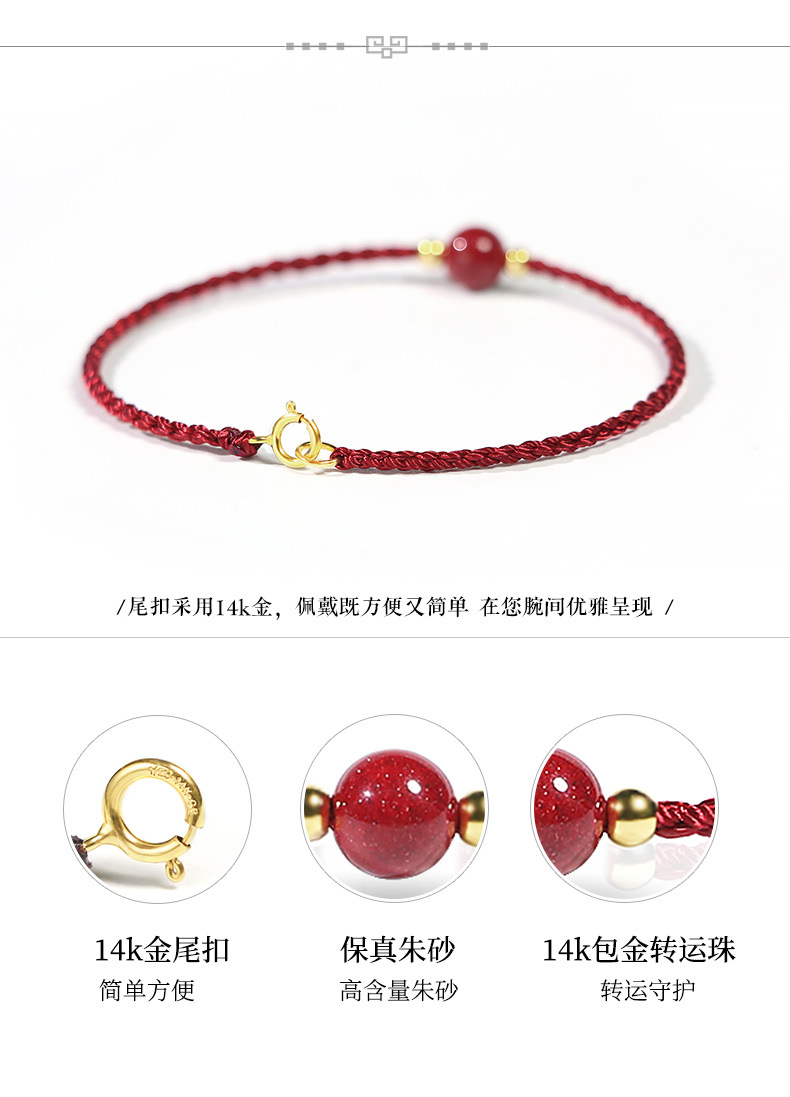 this animal year red rope cinnabar bracelet women's woven lucky beads bracelet couple accessories 中文版