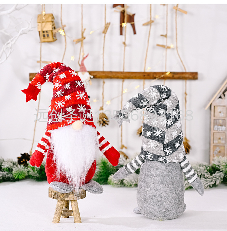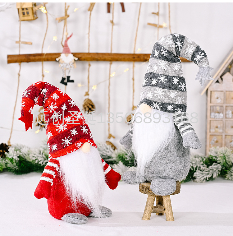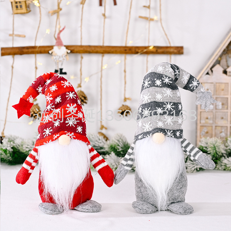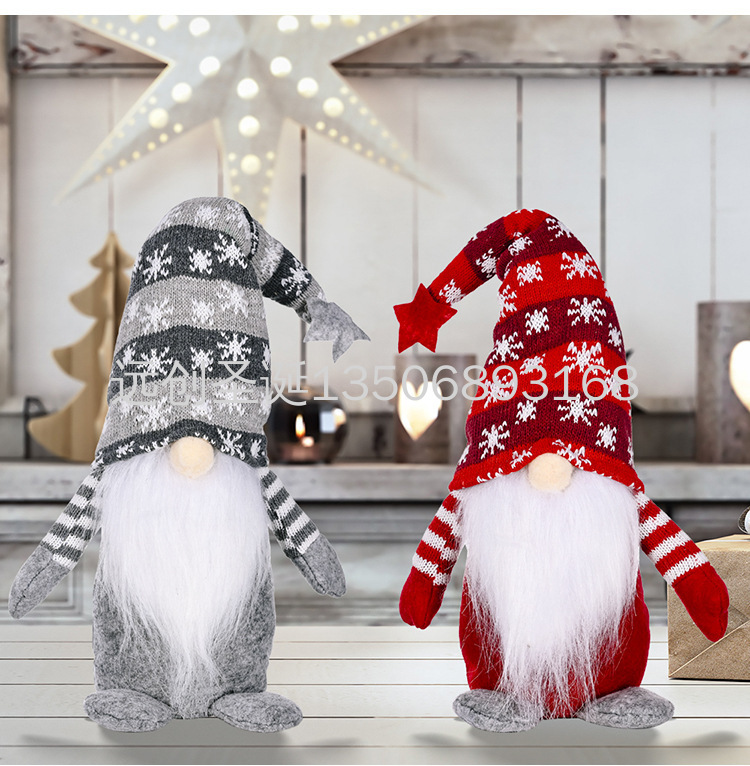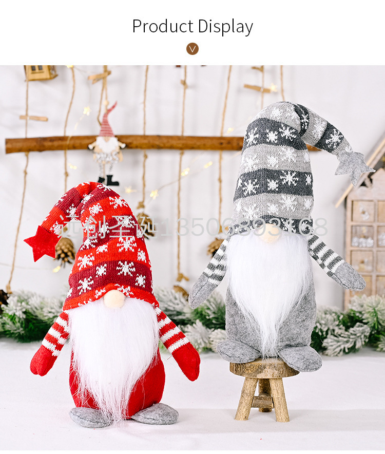 christmas decoration five-pointed star snowflake knitted hat faceless doll rudolph standing posture figurine doll 中文版
