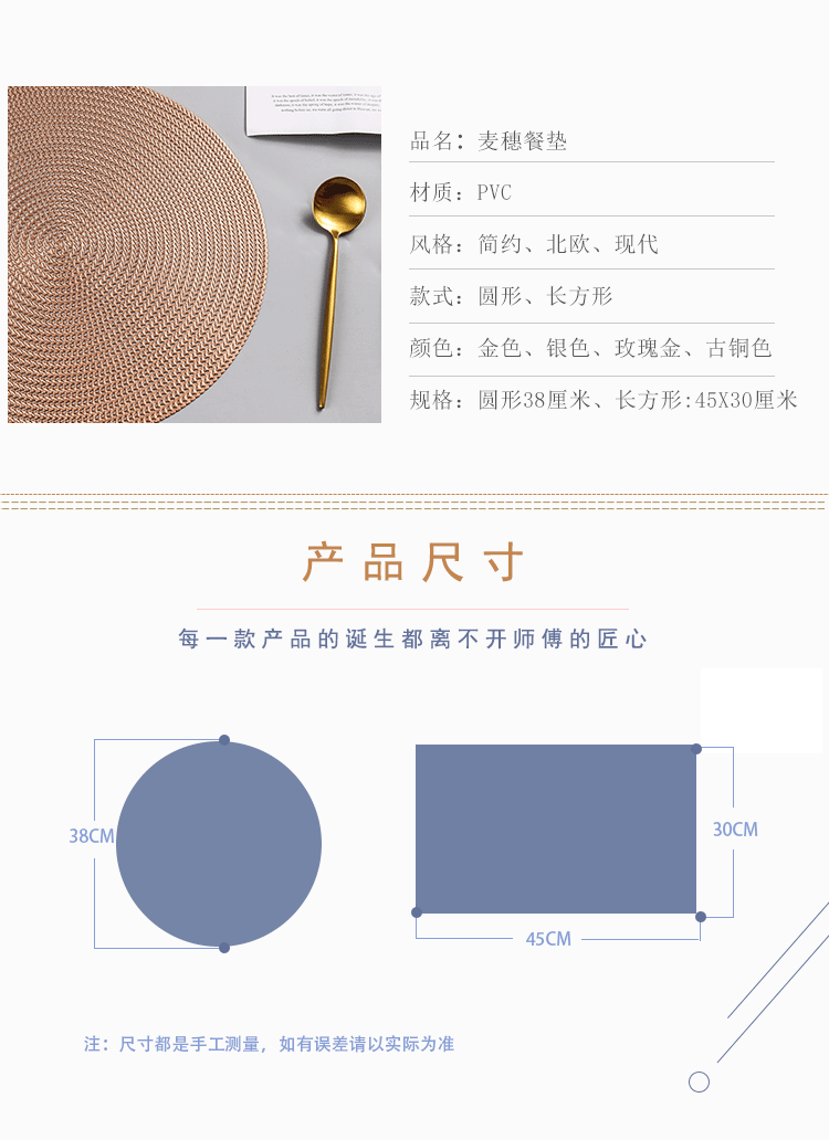 placemat american-style light luxury table mat tea cup mat waterproof thickened bowl mat nordic insulation mat round table mat for home 中文版