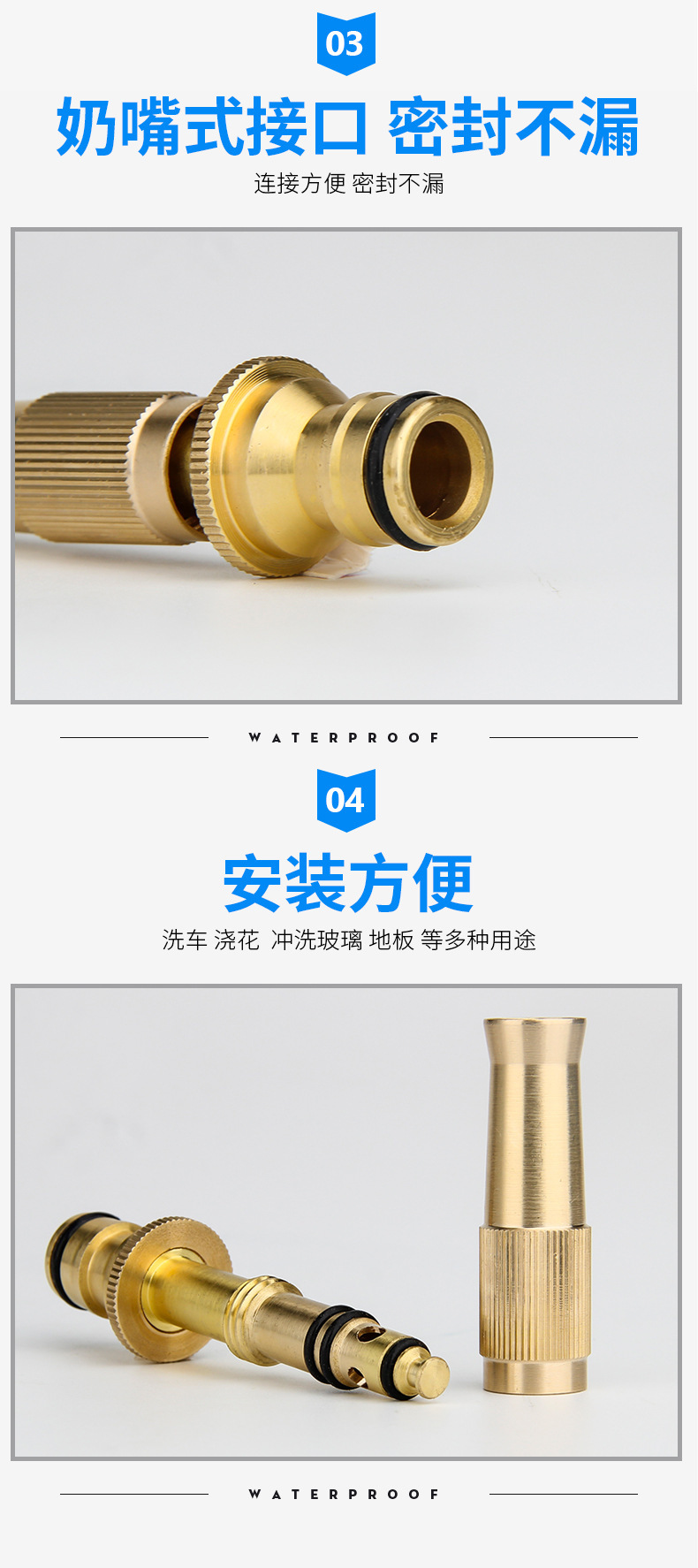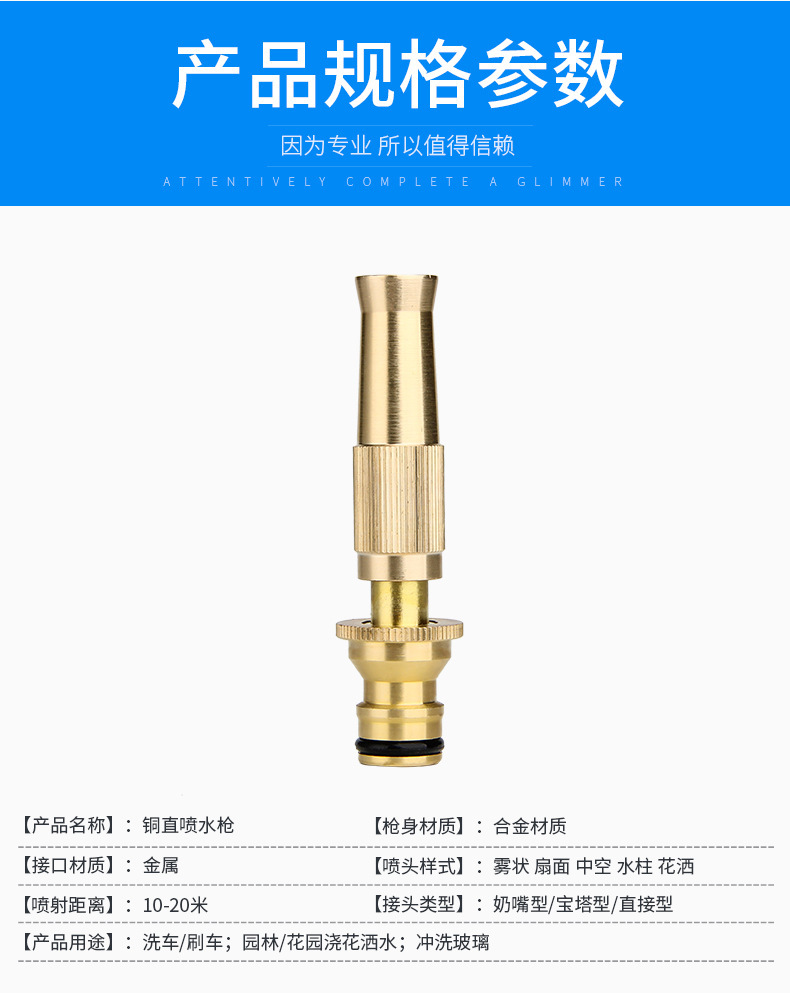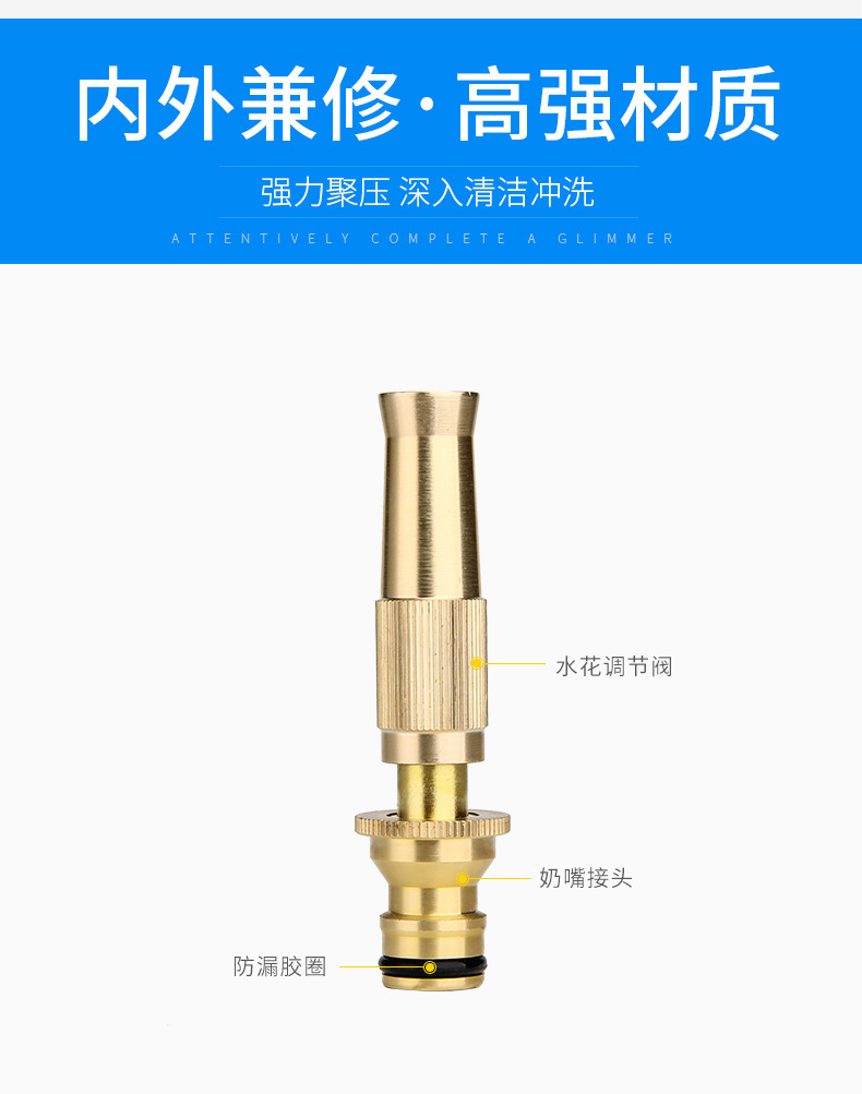 straight water pistols 3-piece pure copper nipple type household high pressure water gun pack garden watering tools