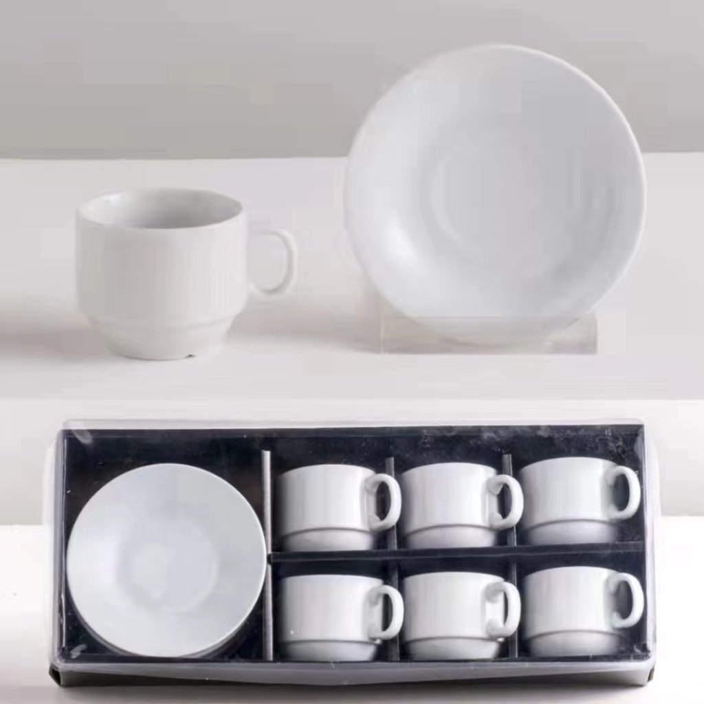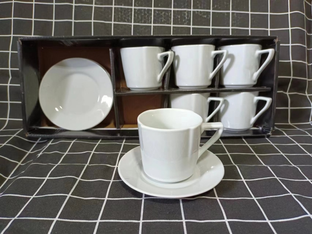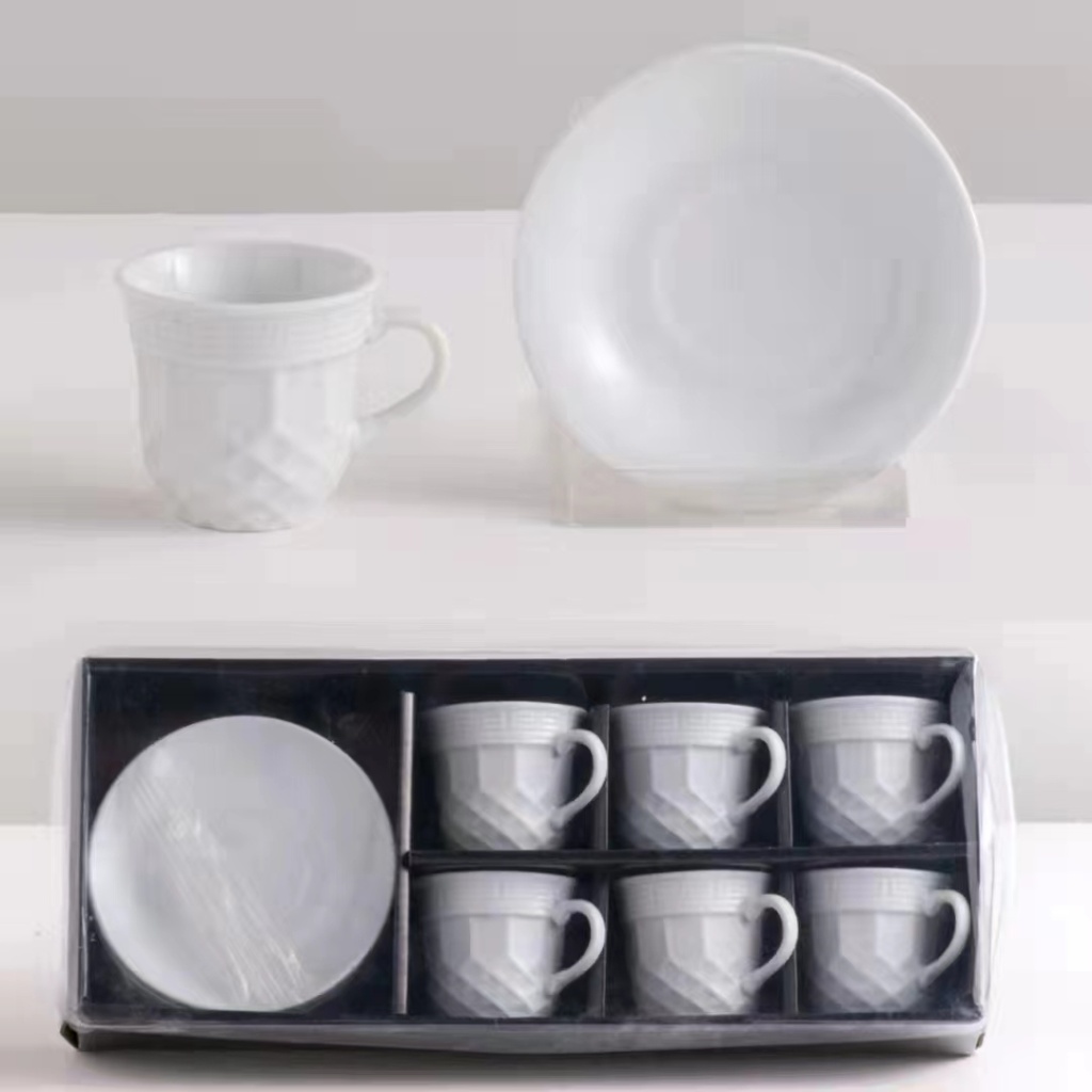 jingdezhen ceramic cup 6 cups 6 plates coffee set suit simple white coffee set kitchen supplies mug 中文版