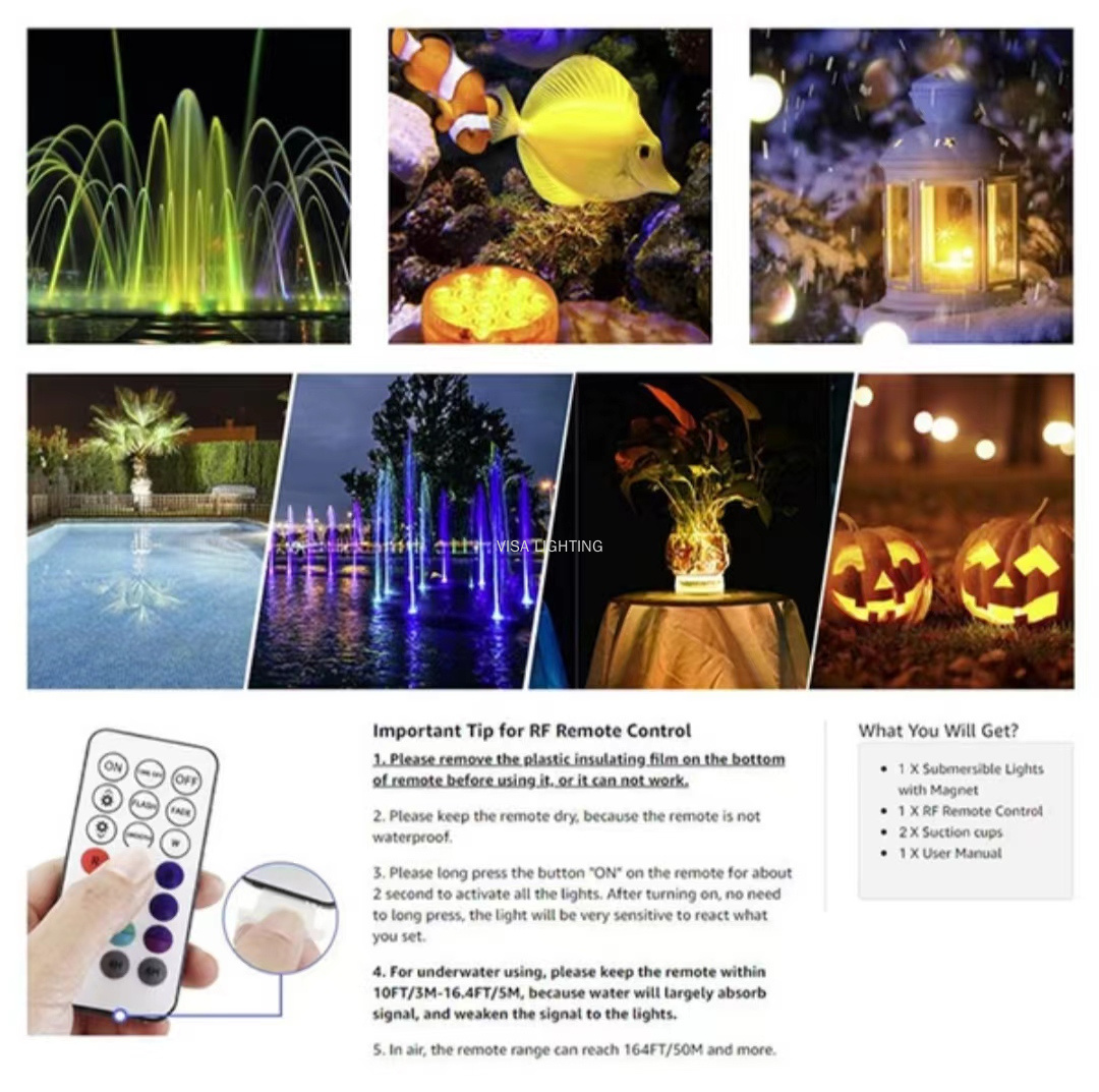 Diving Light Remote Control Colorful Color Changing Swimming Pool Light Underwater Lamp Timing with Suction Cup Magnet