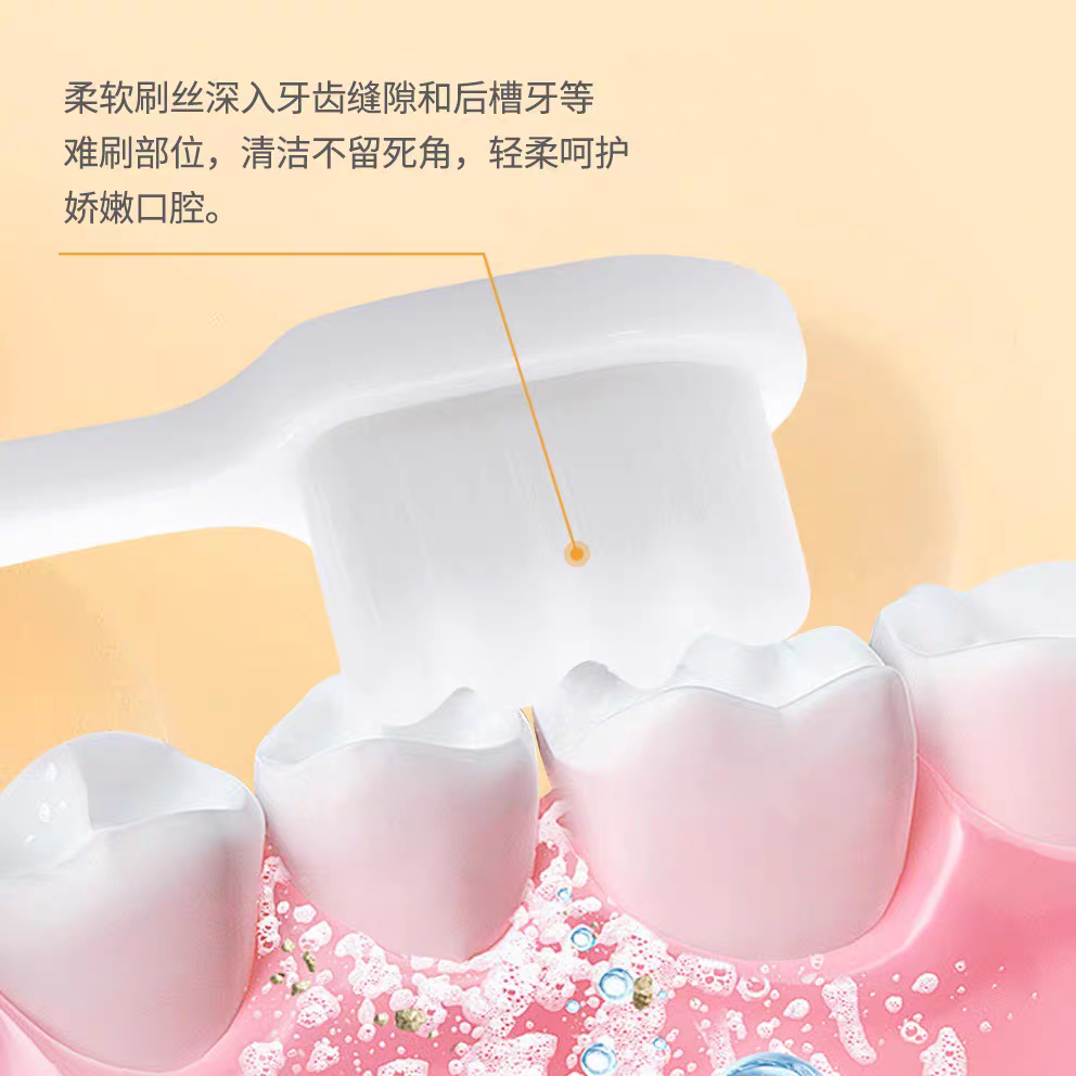 This product adopts a unified planting hair technology, with uniformly arranged bristles. The bristles are made of ultra-fine hair with a diameter of 70 micrometers, which are soft, delicate, and elastic. They are less likely to fall off or reverse, and the dense bristles are easier to clean the dirt in the deep parts of the teeth. It can also reduce the damage to the gums caused by improper force when brushing, caring for the fragile gums of pregnant and postpartum mothers.