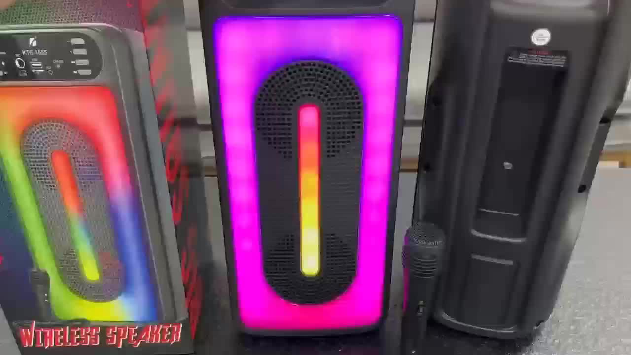 New KTS-1555 Portable Card Bluetooth Speaker Colorful Flame Light Double 4-Inch Subwoofer with Microphone