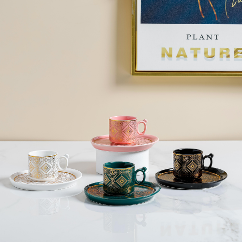 80.90cc affordable luxury style small luxury gold-plated coffee cup 6-piece ceramic coffee set set 6 cups 6 plates
