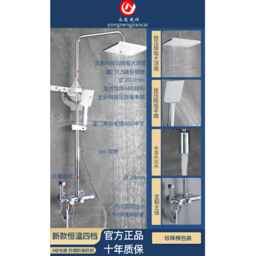 About Product:Household rain full copper silver electroplating main body top spray constant temperature four-speed adjustable boost nozzle suit