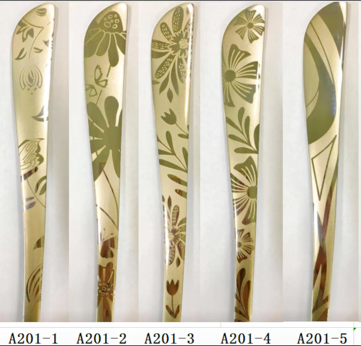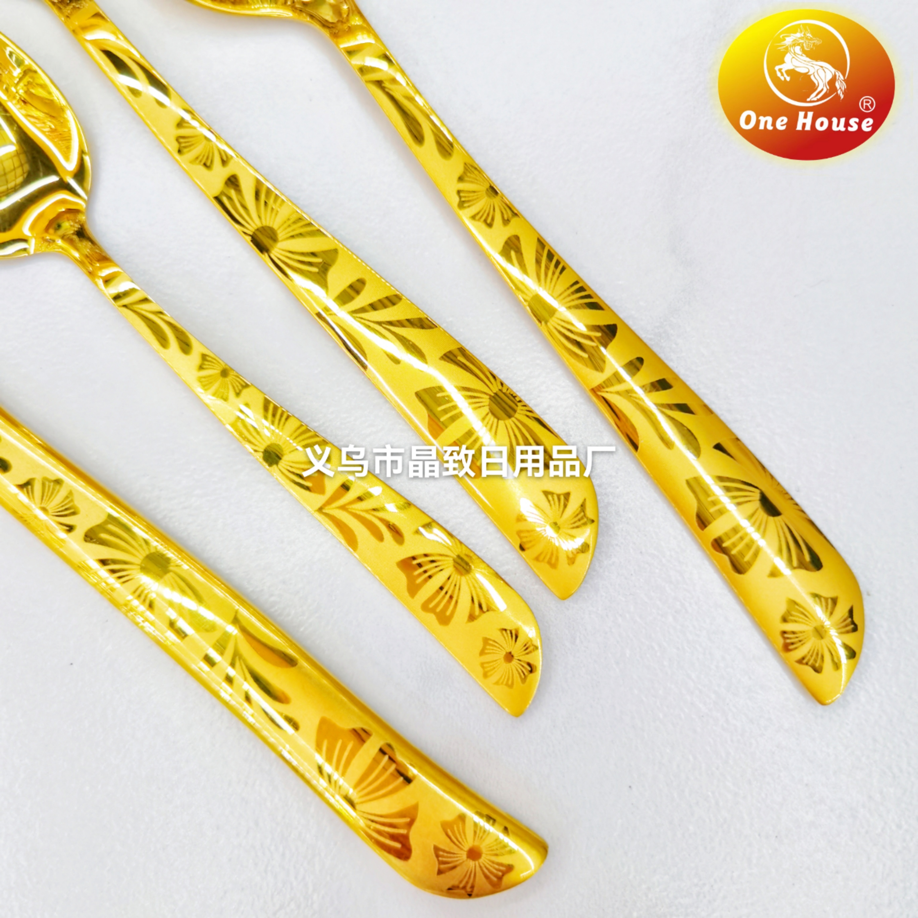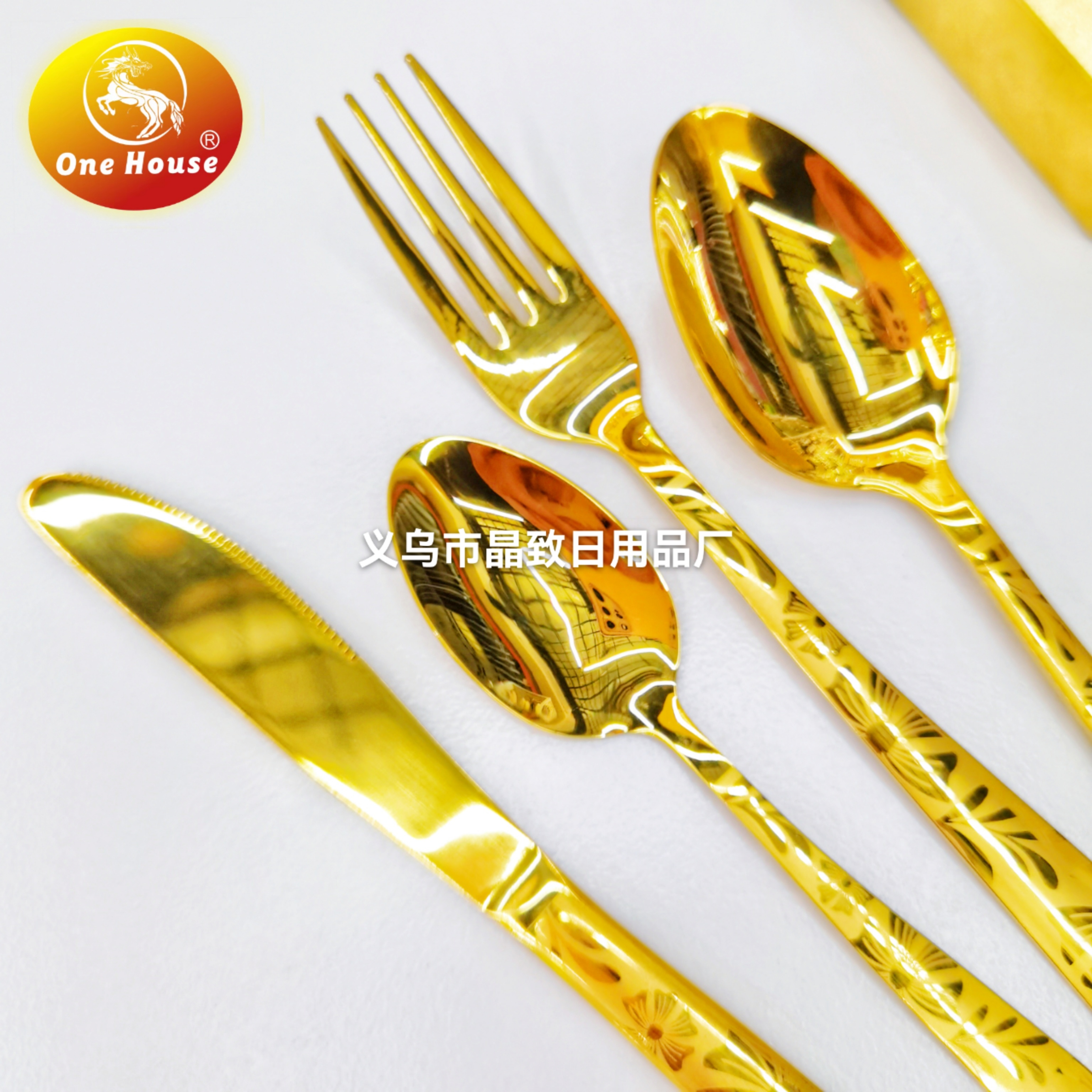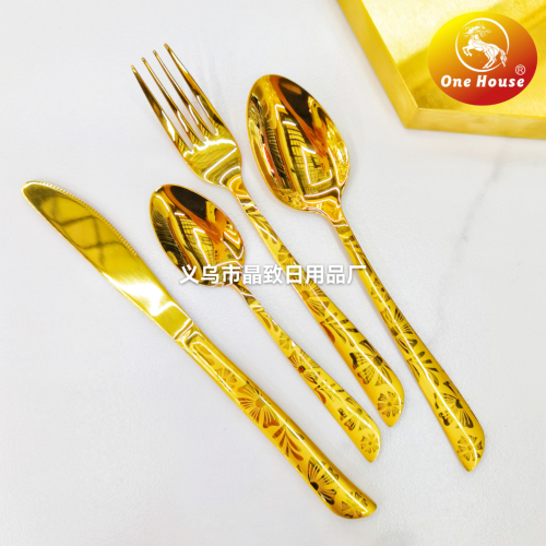 201 Material Stainless Steel Gold Plated Knife, Fork and Spoon 中文版
