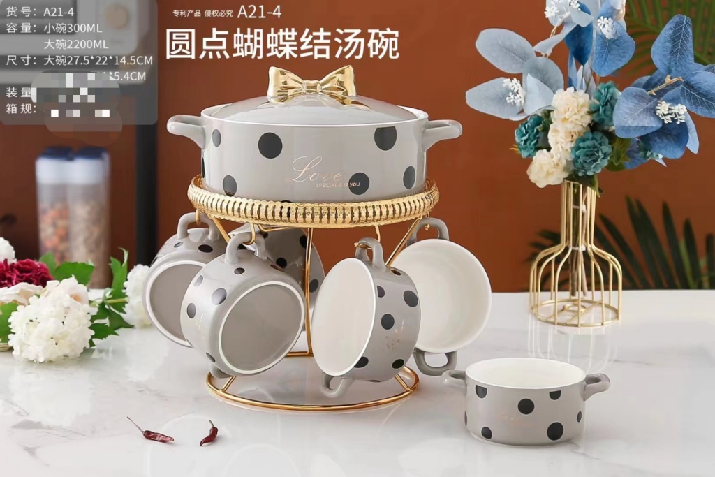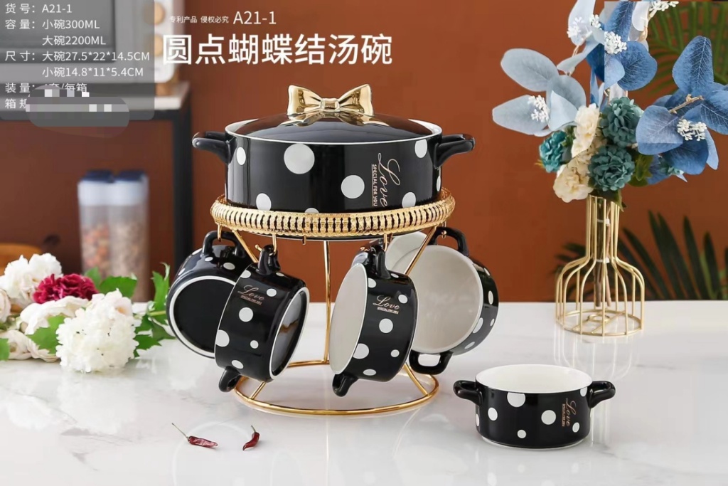 new rice noodle pot soup pot jingdezhen ceramic soup pot set ceramic bowl dual-sided stockpot soup bowl kitchen supplies