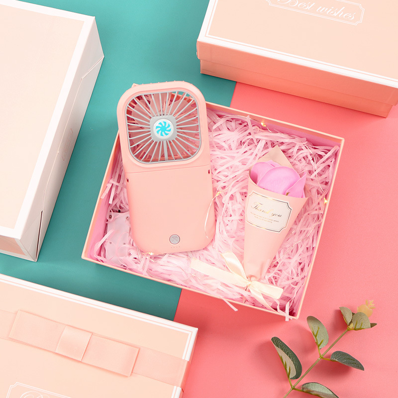 pink rechargeable fan + small flower + powder box