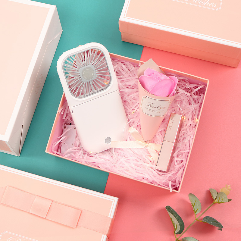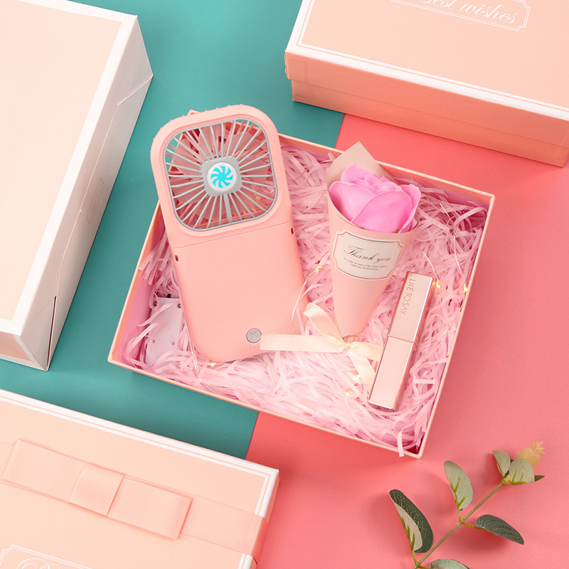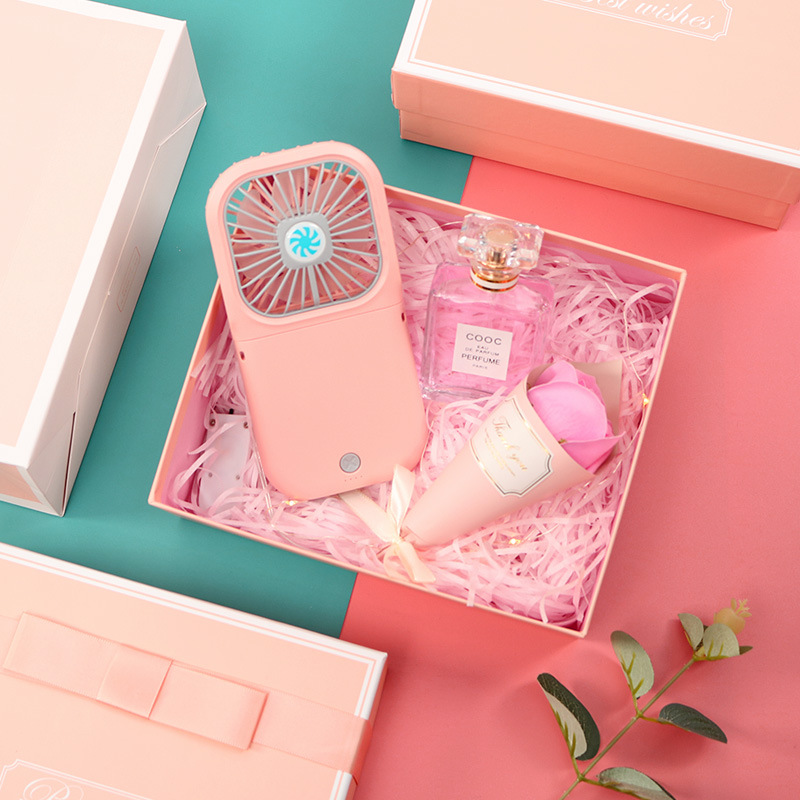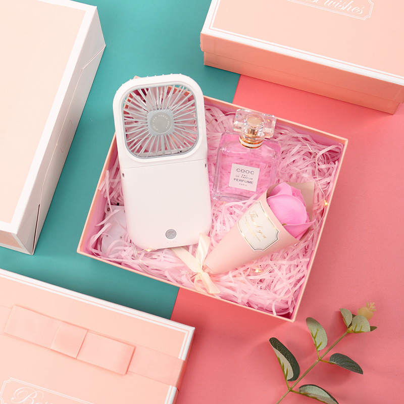 pink rechargeable fan + perfume + small flower + powder box
