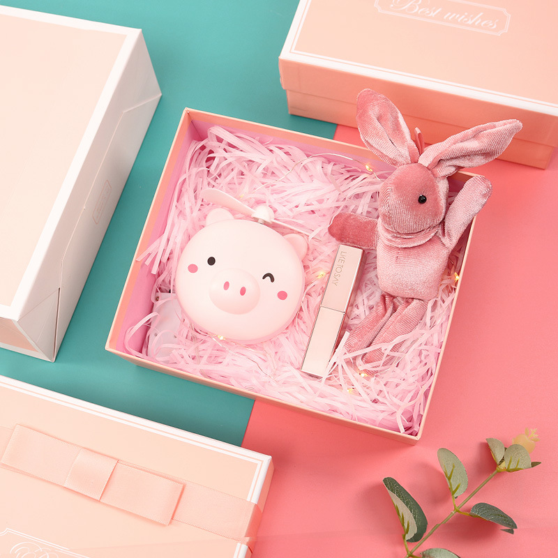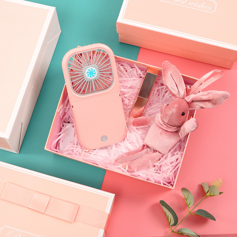 pink rechargeable fan + lipstick + rabbit + powder box