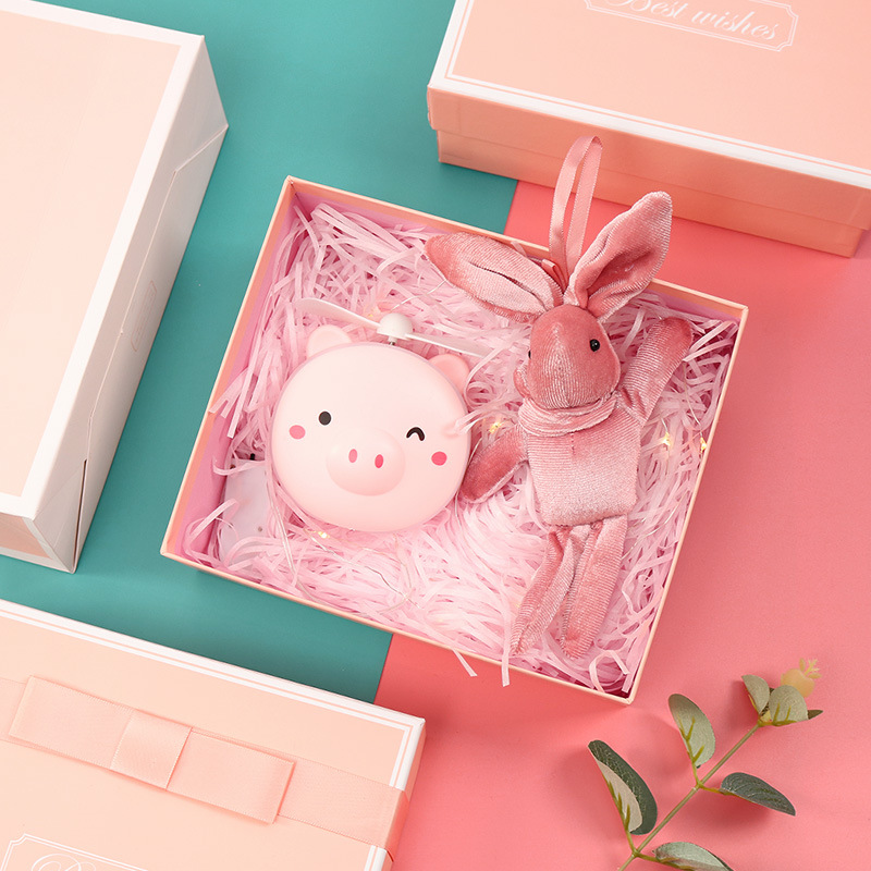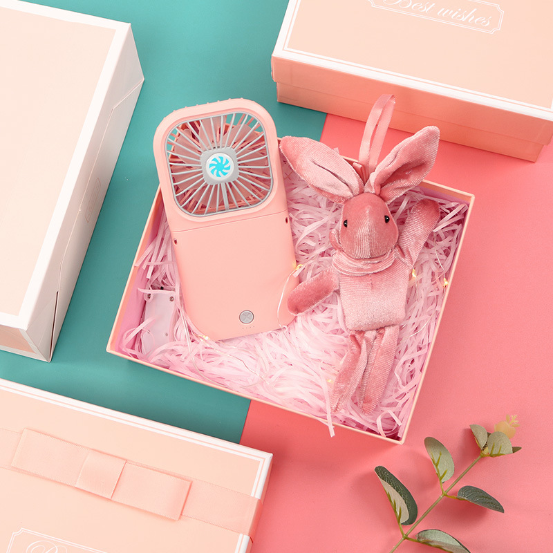 pink rechargeable fan + rabbit + powder box