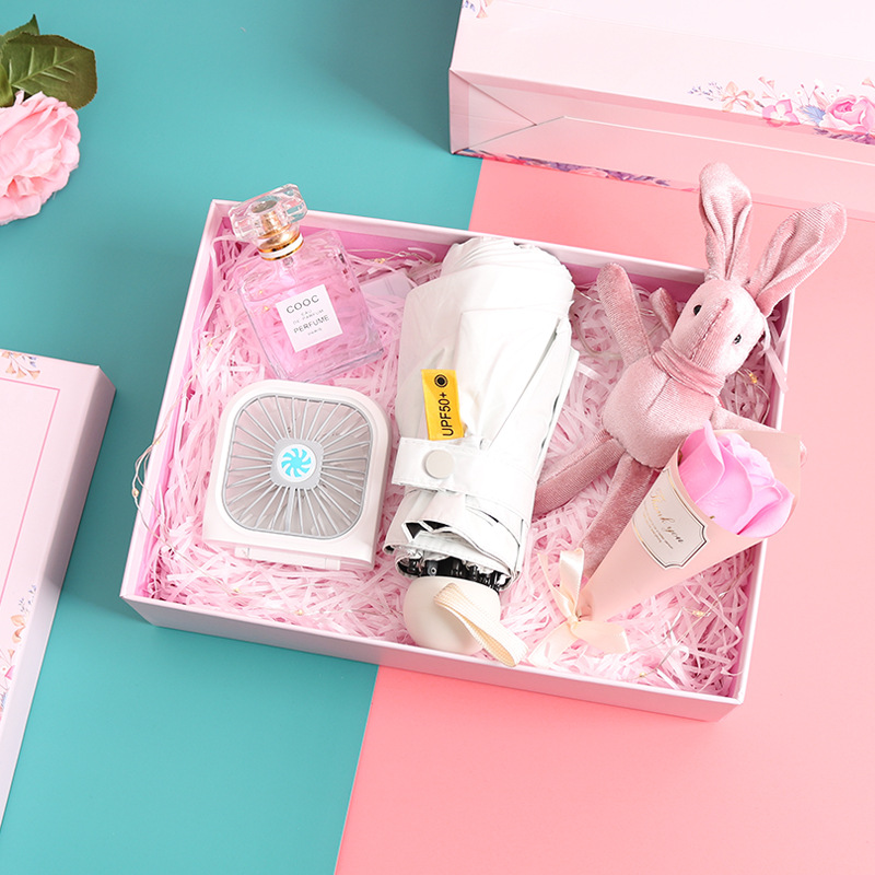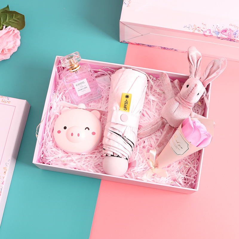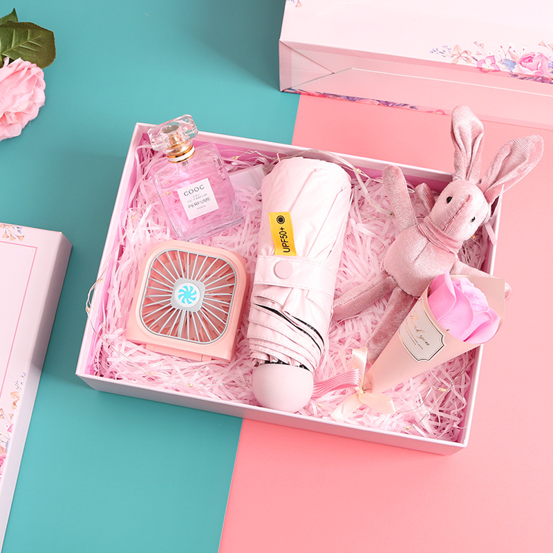 pink rechargeable fan + eight bones 50% off pink umbrella + perfume + suit gift box